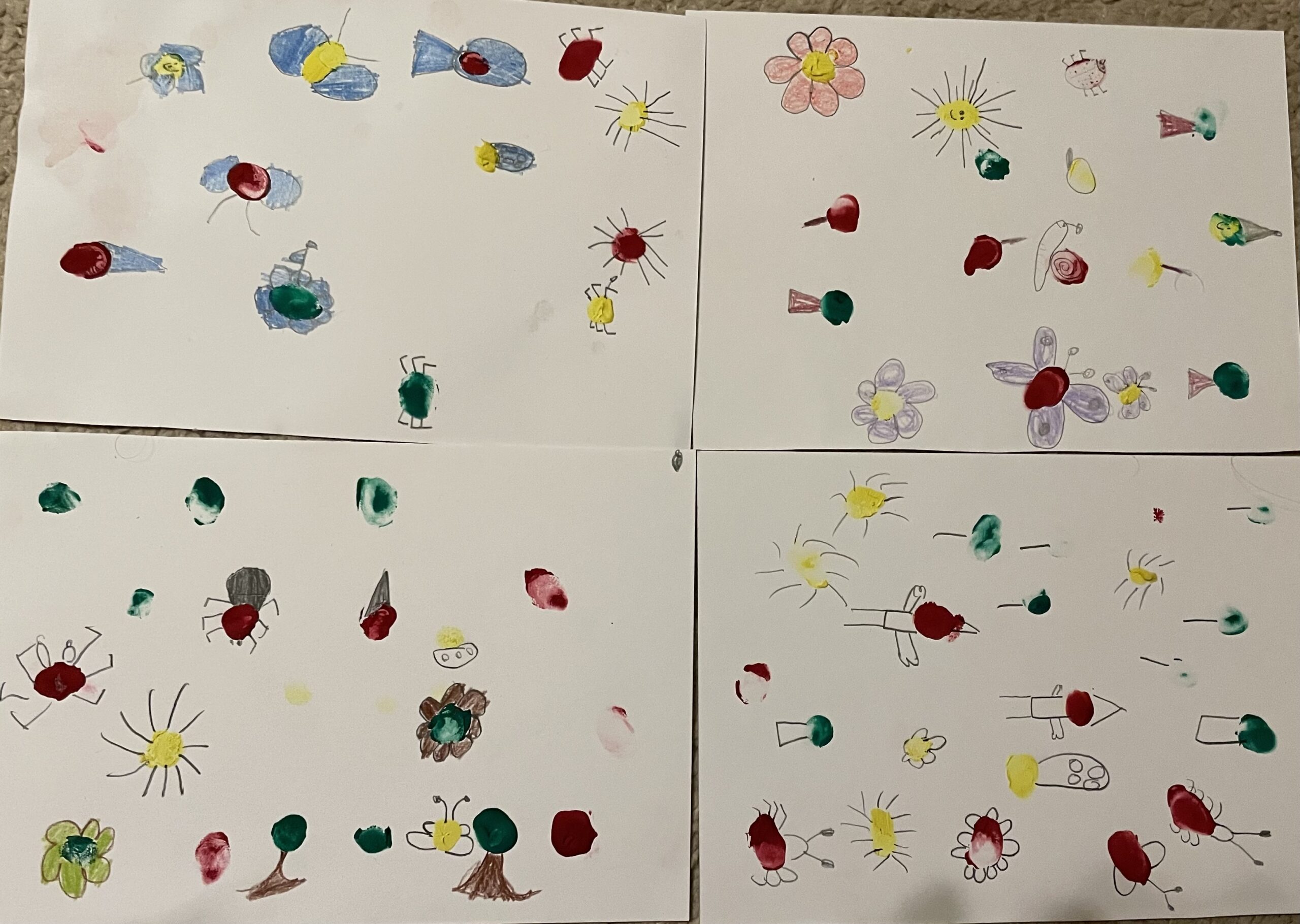 A téma továbbgondolásaként arról beszélgettünk, milyen hasznos lenne egy olyan „varázsrobot”, amely segít megoldani a vitákat. Ehhez kapcsolódva Bagdi Bella Ha boldog vagy… című dalát hallgatva barátság-ujjlenyomatokat készítettünk, amelyeket a gyerekek fantáziadús, színes rajzokká alakítottak. A vidám napocskától a manón és pókocskán át egészen a fagylaltig és virágig sokféle kedves alkotás született.