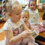 A süni irigy lesz című bábjátékot követően szintén beszélgettünk arról, hogy mi a helyes és mi a helytelen viselkedés, hogyan lehetünk jó barátok, milyen cselekedetekkel tudjuk jobbá tenni a barátságot. Dobókockán vidám és szomorú arcokat láthattak a gyerekek, mindenki dobott és elmondta, milyen arckifejezést lát, ha volt kedve utánozhatta. Záró játékként egy vidám labdás csapatverseny játékot játszottunk. Két csapatban, drukkolva egymásnak vajon mikor ér el a labda a sor elejére.