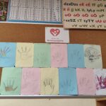 A gyerekekkel megbeszéltük a társas kapcsolatok formáit, azok fontosságát. Majd a barátságról társalogtunk. A tanulók átrajzolták a tenyerüket, majd minden ujjba egy fontos tulajdonságot írtak, mely számukra fontos a barátság során.