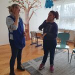 Bevezetésként üdvözöltük egymást, majd a relaxációs gyakorlatok közül a Napimádással hangolódtunk, mely boldogságóráink állandó elemét képezi. Ezt követően meghallgattuk, ritmushangszerekkel közösen kísértük Bagdi Bella Barátság dalát.