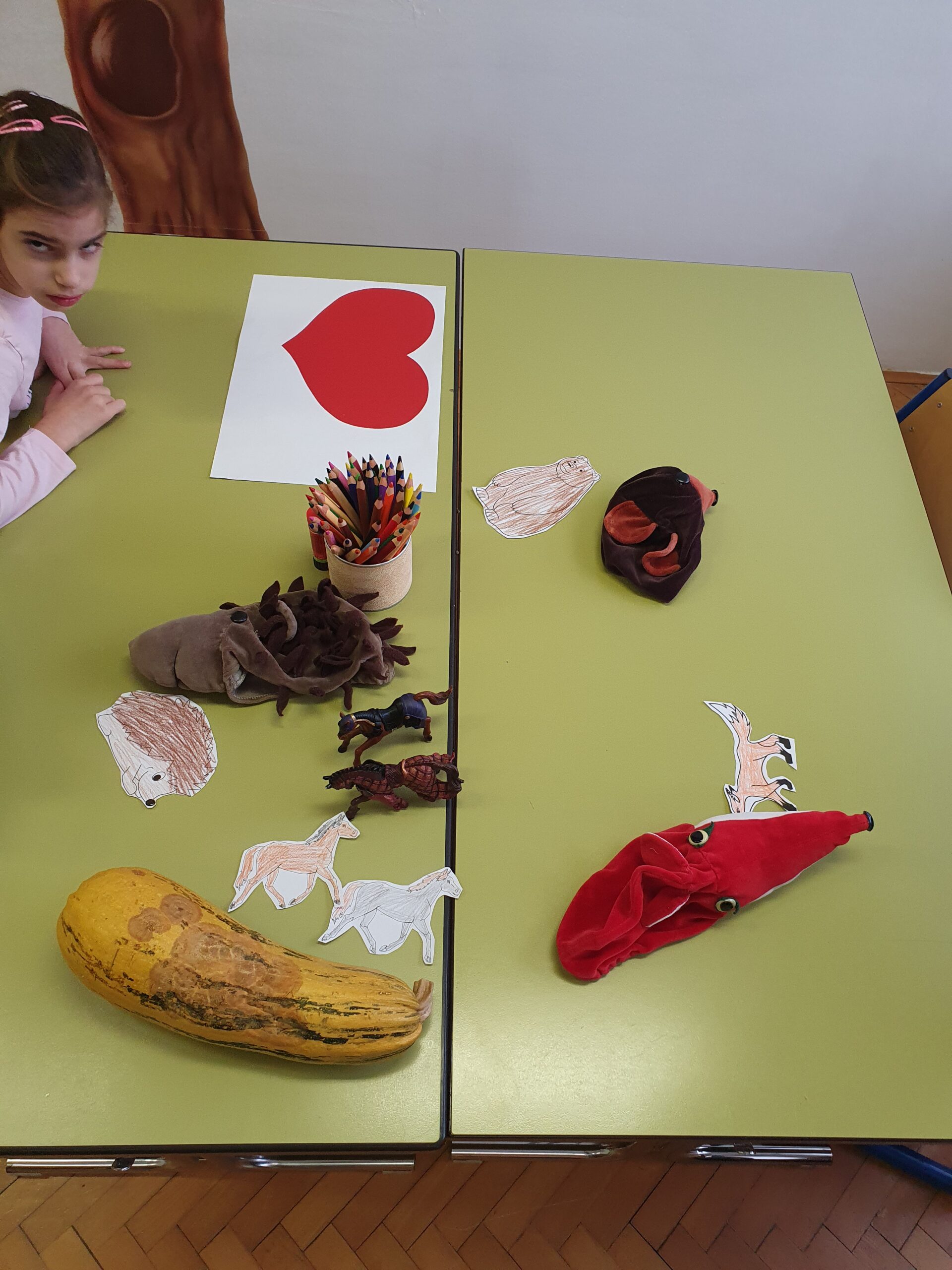 A témát a következőképpen dolgoztuk fel: megbeszéltük az óra témáját, és a megfigyelési szempontok ismertetése után megtekintettük A lókötő róka című mesét. Beszéltünk a mese szereplőiről, tulajdonságaikról és arról, hogy milyen kapcsolat van közöttük, majd eljátszottuk a mesét. Megállapítottuk, hogy a mesében kik a barátok, és hogy a barátságra mi jellemző. Kiemeltük a szeretetet, a segítést és az együttlétet. Ezeknek a fogalmaknak a gesztusjeleit is megismertük, gyakoroltuk. Ezt követően a meseszereplők képeinek felhasználásával elkészítettük a kapcsolatképet, melyet faliújságra helyeztünk.