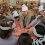 A Márton-napi történetet, annak értékközvetítő (szerénység, jóság, kedvesség, barátság…) szerepét ismertettem meg minden kisgyermekkel valamilyen formában. Közösen tornáztunk, libasorban jártunk különböző göröngyös utakon. Sokféle kézügyességi feladatokkal ismerkedtünk: térbeli libákat, „libabarátokat nyírtunk, ragasztottunk; „barátságnyakláncot” fűztünk tésztából, lámpást készítettünk, mely elvezetett bennünket a jó út felé, s a végén a lámpás melegénél érezhettük az összetartozást jelképező tűz melegségét. Zsíroskenyeret kentünk egymásnak, mikor megéheztünk, átadva a másik pajtásunknak kedvességből, így hangsúlyozva az egymás iránti szeretetünket és kedvességünket. A „szeretetnyelven” (kártya) igyekeztünk kifejezni érzéseinket és megfogalmazni, mi tetszik a másikban, milyennek látjuk egymást. Zárásként „barátságpárnát” készítettünk és zenés, táncos mulatsággal zártuk a hetet. Minden pillanatát élveztem a hétnek, hiszen együtt lehettünk és egymást segíthettük mindenben.