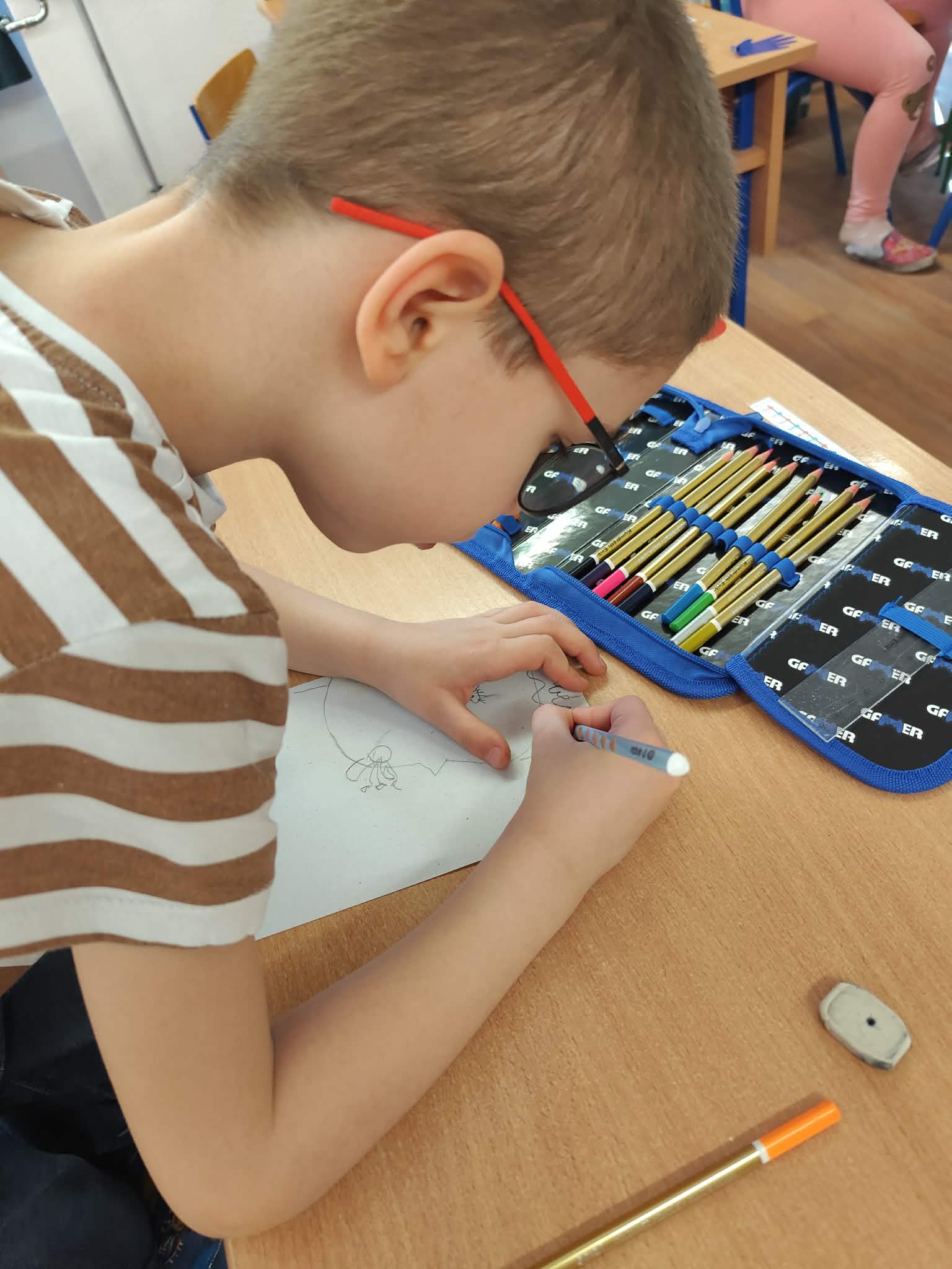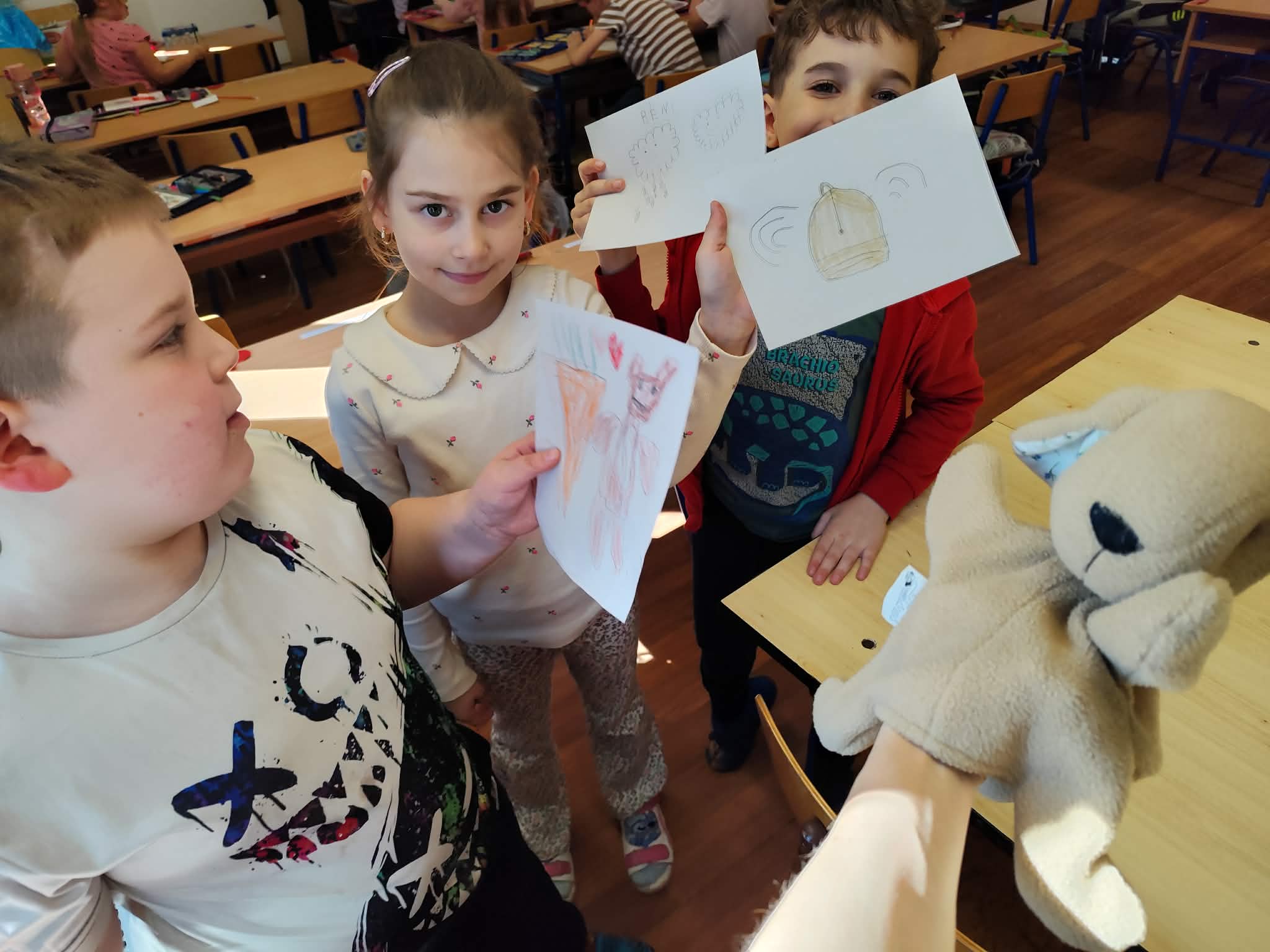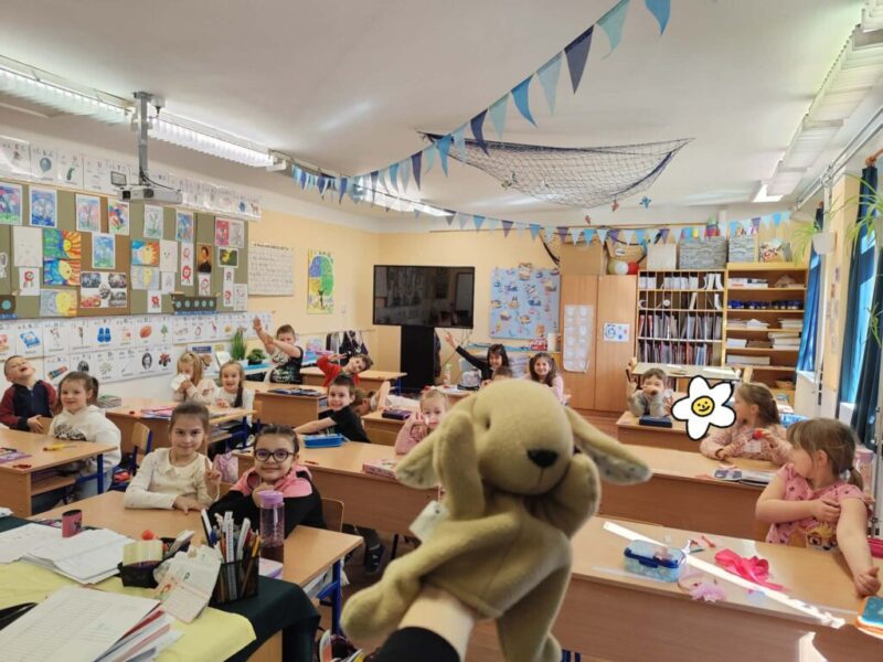 A báb használata oldott, vidám hangulatot teremtett, és segített abban, hogy a gyerekek bátrabban megfogalmazzák gondolataikat. Az óra végén közösen összefoglaltuk, hogy mindenki kerülhet nehéz helyzetbe, de kitartással, bátorsággal és egymás segítésével megtalálhatjuk a megoldást. A tanulók tanácsaikat szimbolikusan le is rajzolták, majd átadtátok Béninek, hogy mindig emlékeztesse őt arra, mit lehet tenni egy-egy nehéz helyzetben.