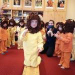 Oroszlános farsangi jelmezünk jól illeszkedett a témához, megbeszéltük, hogy ő az állatok királya, aki igazán erős és mindennel meg tud küzdeni. Belebújtunk a bőrébe, kipróbáltuk hogyan tud ordítani ha mérges, és milyen bátran mászik végig az akadályokon.