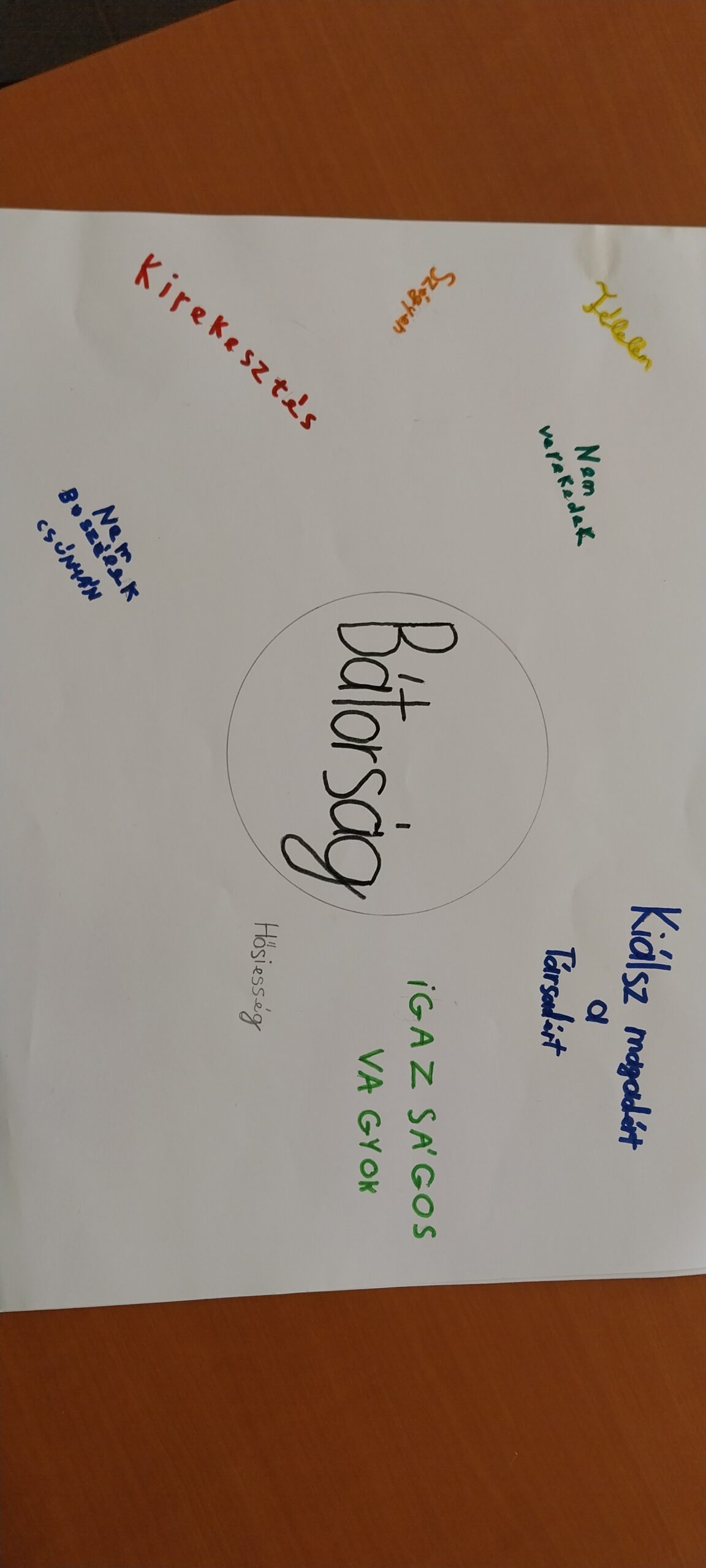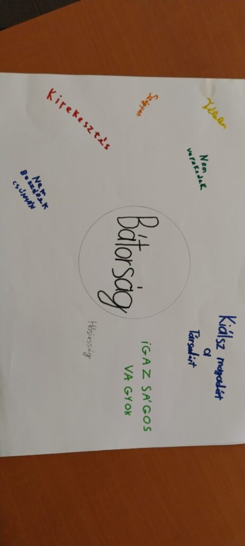 Megnéztük a kisvideót, és beszélgettünk a különböző bátorságokról. Majd a diákok körbeírták a kulcsszót olyan szituációkkal, amikor szükségük volt a bátorságukra.