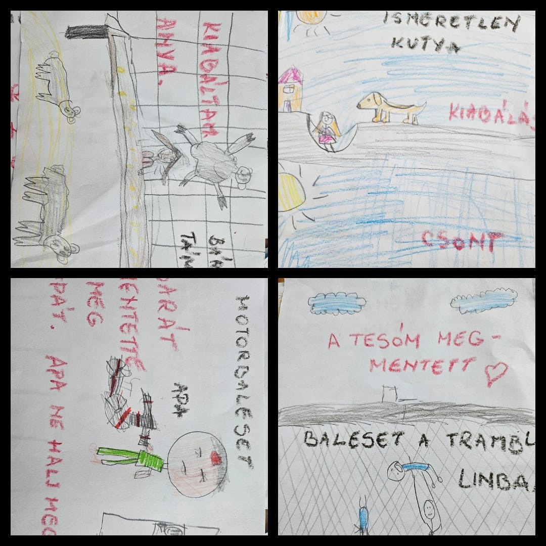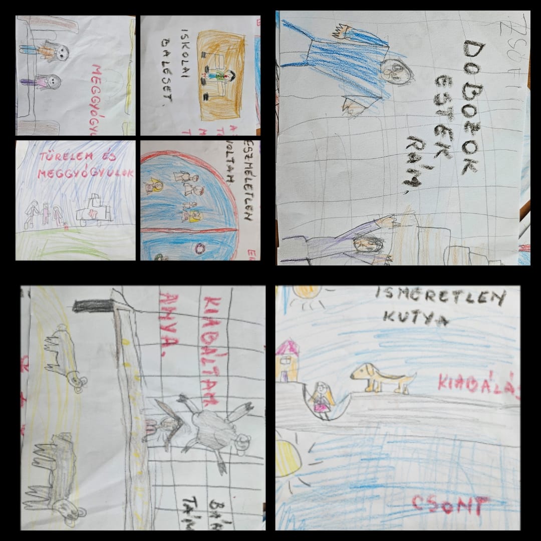 A Tasnádi Általános Iskola Madárkái az általuk megélt problémahelyzetekről, azok megoldásáról beszélgettek. Meséltek arról, hogyan érezték magukat, amikor gondjaik voltak, amikor családjukban volt nehézség, kik segítették őket a megoldasbán. A rajzos beszámolók betegségekről, iskolai, strandos, közúti, játszótéri balesetekről, veszélyes találkozásokról és azokra vonatkozó megkűzdési stratégiákról számolnak be. Arra a következtetésre jutottunk, hogy mindenki életében voltak és lesznek kellemetlen helyzetek, problémák, melyek mindig megoldással társulnak. Minden beszámoló pozitív végkifejletetről tett tanulságot. Van megoldás! Fontos, hogy beszéljünk gondjainkról, félelmeinkről, problémáinkról, hogy segítséget kaphassunk a megkűzdéshez. Ugyanez érvényes a veszélyhelyzetekre is. Fontos, hogy ne veszítsük el a józan eszünk, a reményünk és bátorságunk.