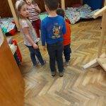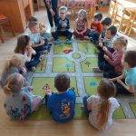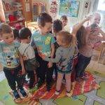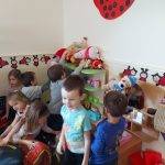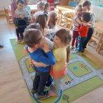 A februári boldogságórát ráhangolódásként a Hajótörés játékkal kezdtük: egy színes lepedő volt a hajónk, ami zenehallgatás közben egyre jobban összement. Amikor elállt a zene, fel kellett rá férnünk minél többen. A lepedő legkisebb formájára is szűkösen, de ráfértünk mindannyian. Szorosan ölelték egymást, hogy senki ne essen a képzeletbeli tengerbe.