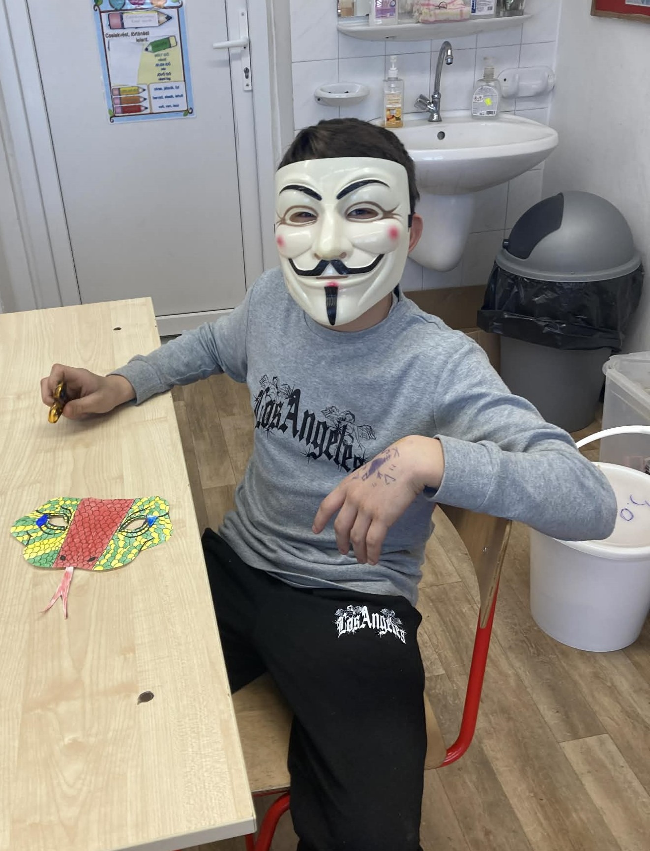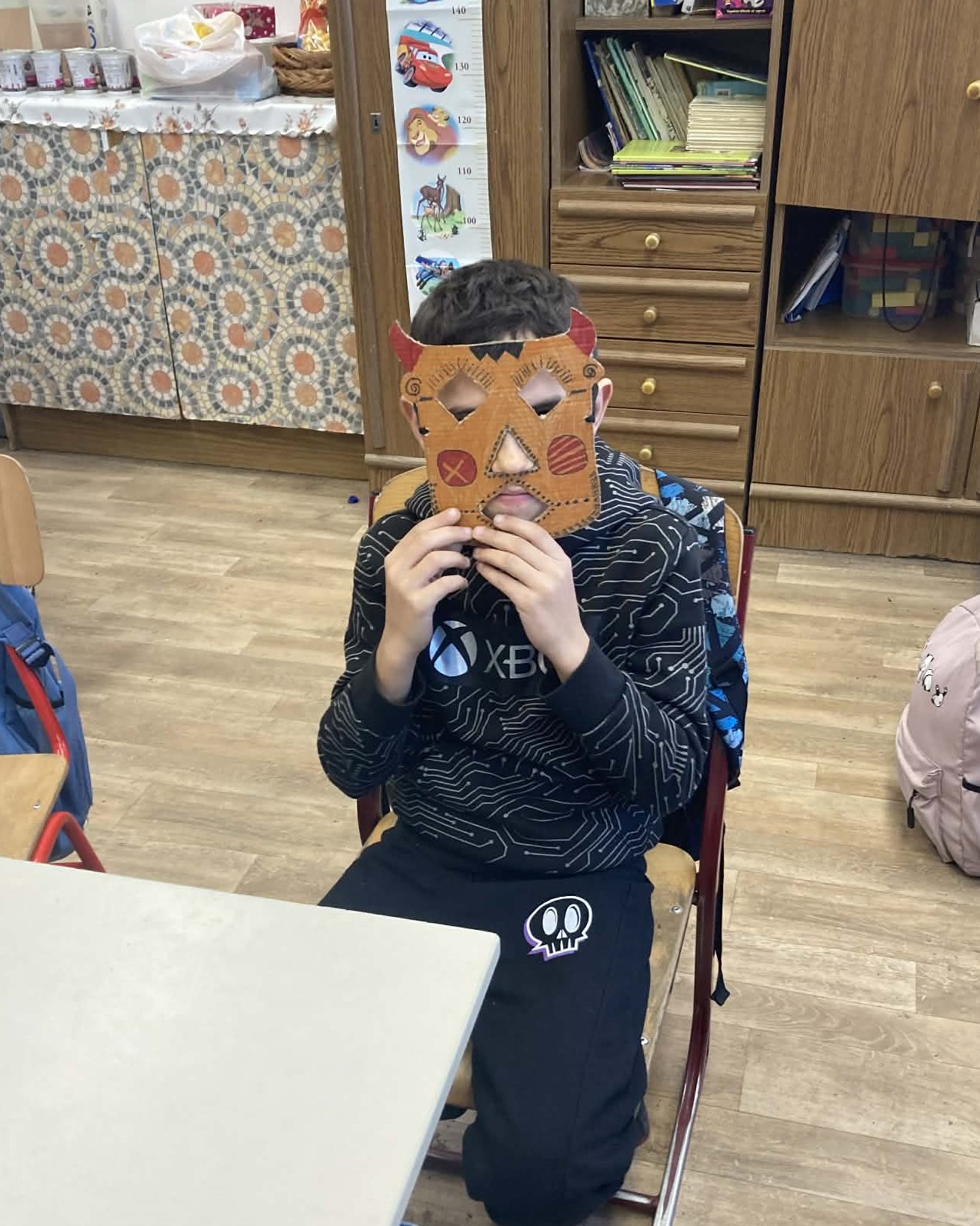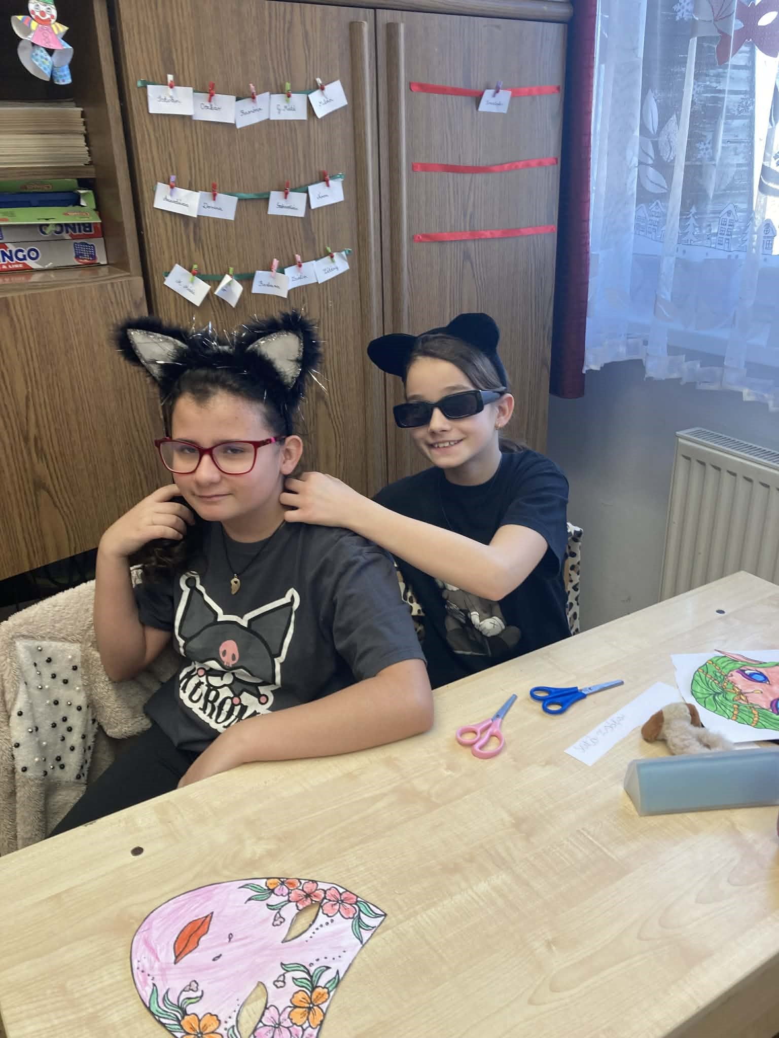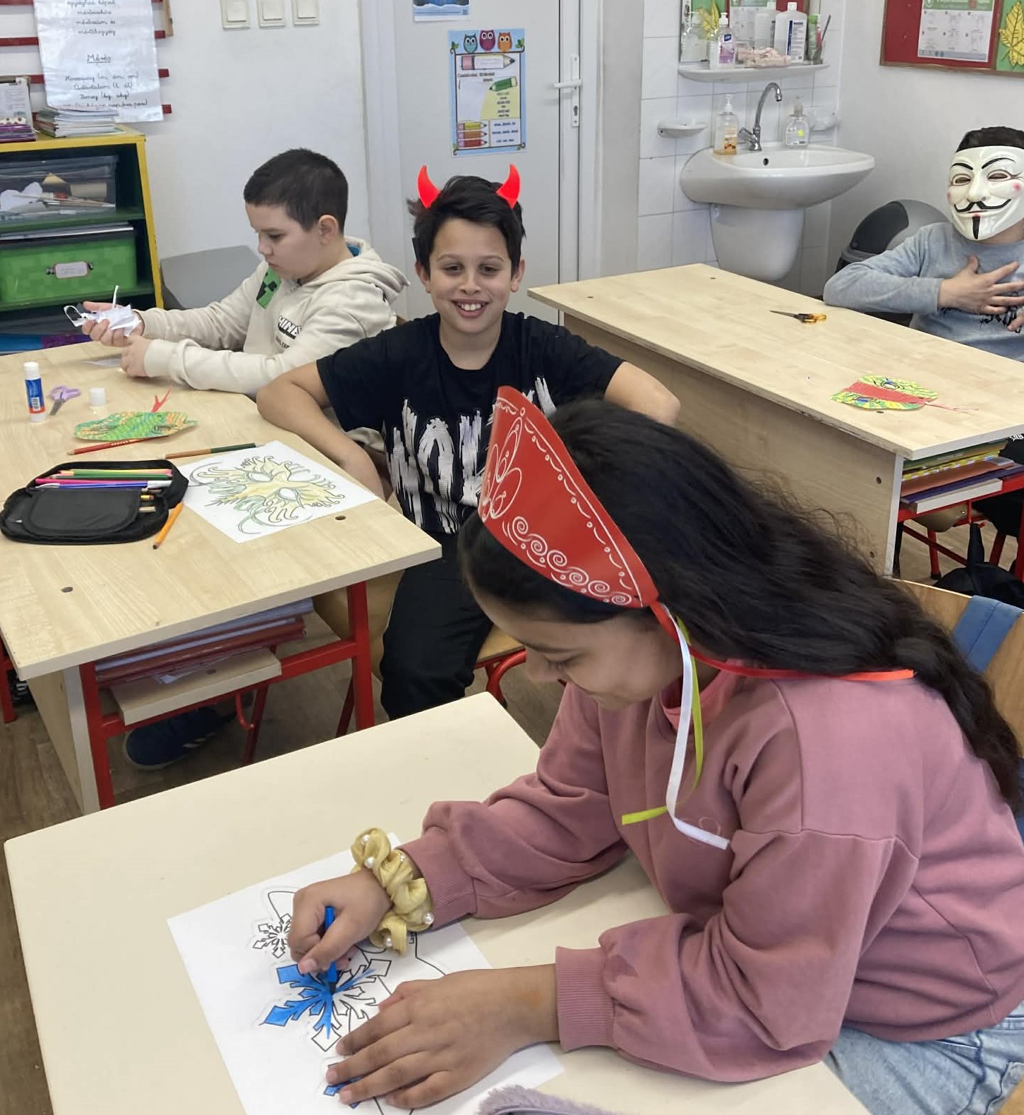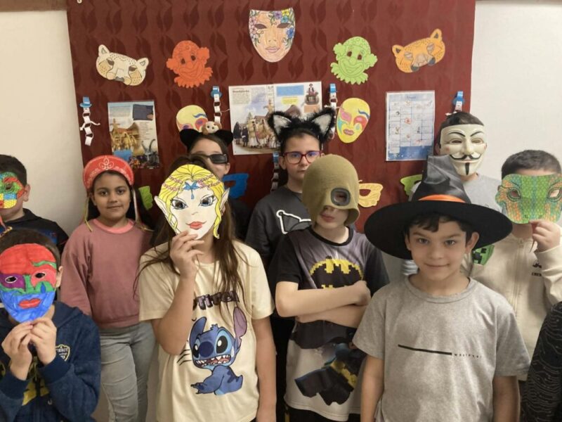 A gyerekekkel sorra vettük mindennapi nehézségeiket, melyek megoldásához összegyüjtöttünk pár nagyon hasznos praktikát. A beszélgetés során mindenki választhatott magának egy farsangi álarcot, attól függően, hogy kinek vagy minek a bőrébe bújva érzi magát bátrabbnak, őszintének esetleg legyőzhetetlennek. Míg ők a kiválasztott álarcot színezték, felolvastam nekik A széttáncolt cipellők című mesét.A mesehallgatás után záporoztak az ötletek, hogy ki mihez kezdene, ha lenne egy láthatatlanná tévő köpenye.