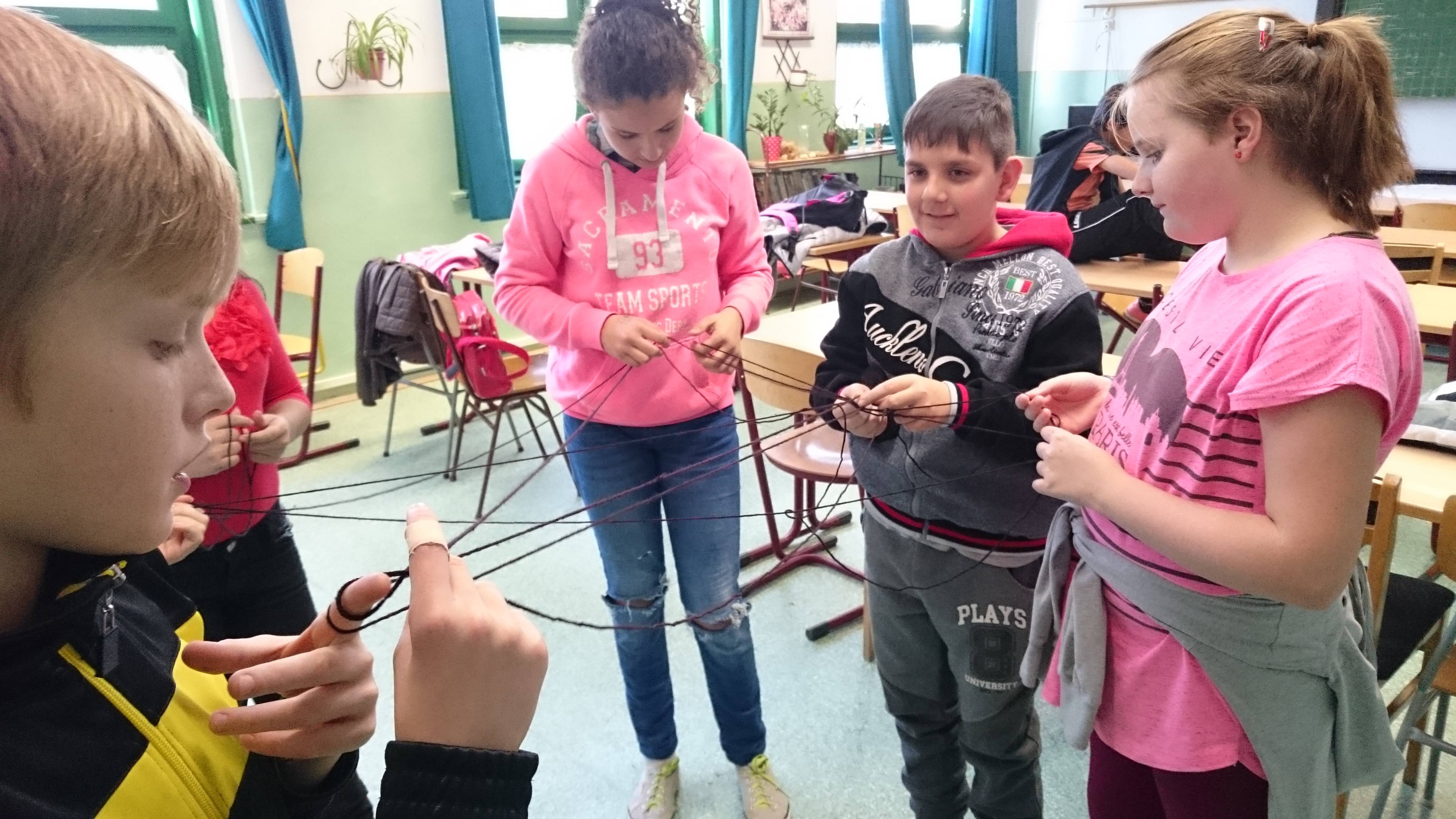 Egyik kedvenc feladatuk az volt, amikor egy gombolyagot kaptak a kezükbe. A feladat a következő volt: Az első tanuló adja a fonalat annak a társának, aki számára fontos. Ő adhatja tovább. Minden átadásnál a másik fél szemébe kellett nézni, és egy mondatot kellett neki mondani, amely így kezdődött: \\\\\\\\\\\\\\\”Fontos vagy nekem, mert…..\\\\\\\\\\\\\\\”.