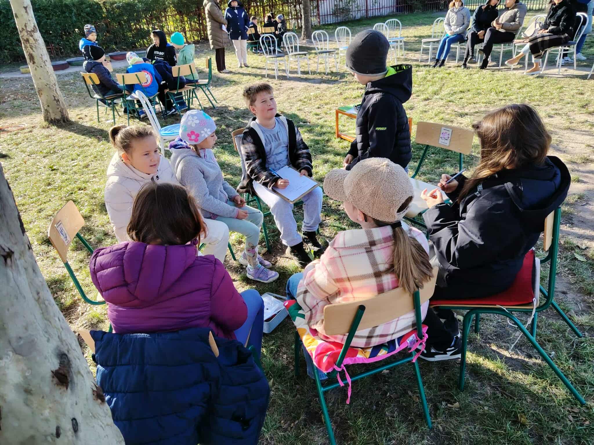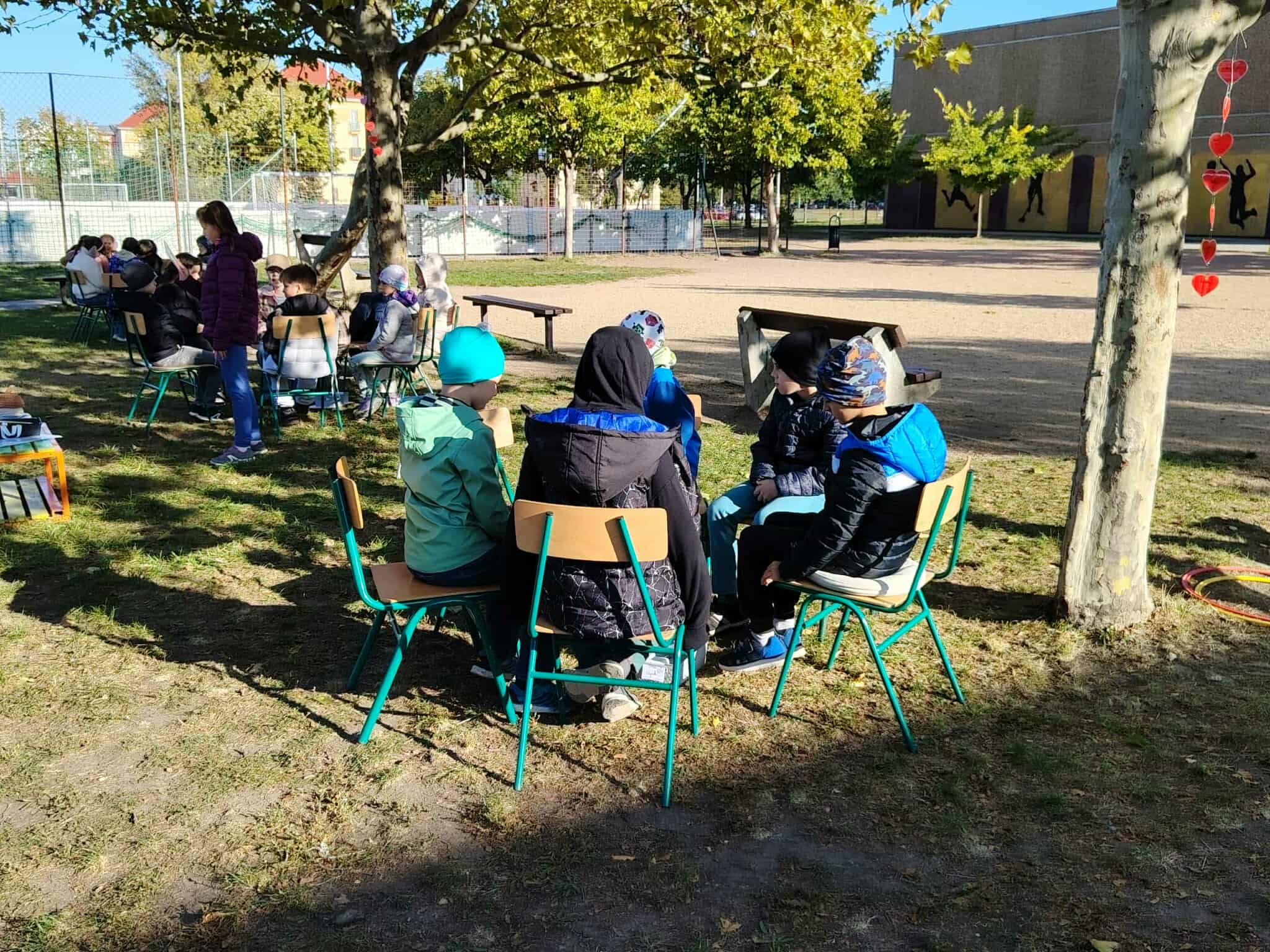A csoportommal szeptember óta dolgozunk a programmal, és amikor csak lehetett, a foglalkozások egészét vagy egy részét az iskolaudvaron, természetes környezetben valósítottam meg.