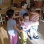 Boldog Dóra erre a napra Bezzeg Andrea: Boldog erdő – Kerek erdő című meséjét hozta nekünk. Mese közben átismételtük, mit is tanultunk az elmúlt kilenc hónap alatt: a Hála-pataknál felsoroltuk, miért lehetünk hálásak (újra együtt vagyunk…) az optimista réten föltettük a varázs szemüvegünket és fölsoroltuk jó tulajdonságainkat, a barátság házikónál elmondták, kinek a nevét írnák a ház falán lévő szívecskébe, vagy kivel költöznének be a házba. A célok hídján elsorolták, milyen vágyaik, álmaik, céljaik vannak, a jótett tisztáson a mai nap jó cselekedeteit számláltuk meg. Az apró örömök szigetén annyi örömet soroltak, fel, alig győztük kivárni a végét! A megbocsátás erdejénél néhányan bocsánatot kértek pajtásuktól (elvették a játékot, vagy feldöntötték a készülő várat). A testmozgás útján egy rövid tornát rögtönöztünk. A mese után kiszíneztük a munkafüzetben talált boldogságláncot. Aki már elkészült, elővette a Pozizivity társast és még jót játszhatott, fölelevenítve a mese színtereit, feladatait.