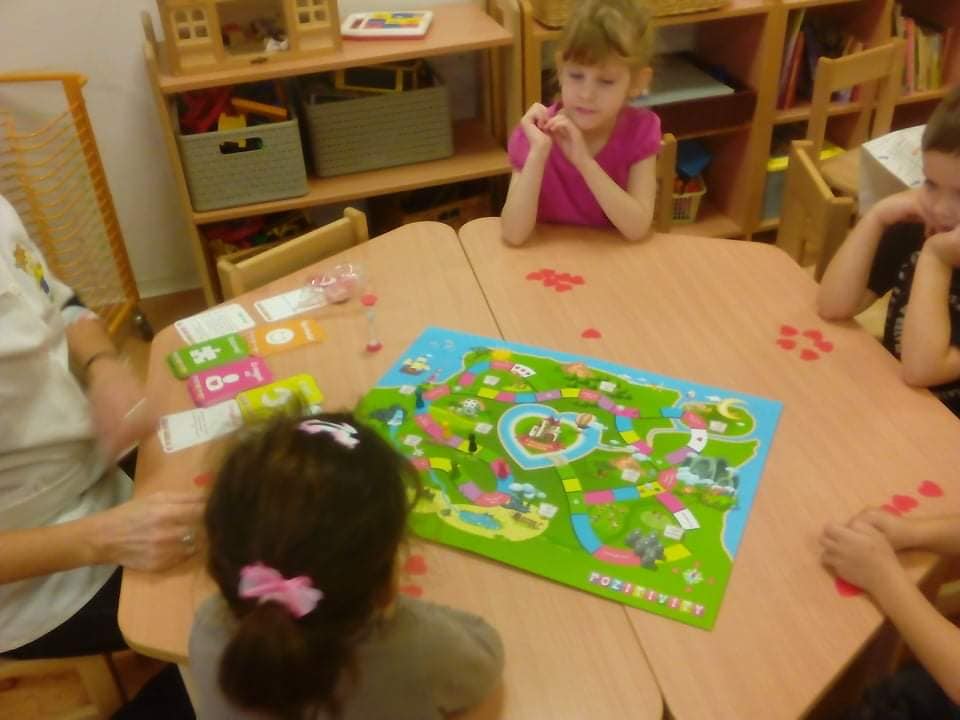 Boldog Dóra erre a napra Bezzeg Andrea: Boldog erdő – Kerek erdő című meséjét hozta nekünk. Mese közben átismételtük, mit is tanultunk az elmúlt kilenc hónap alatt: a Hála-pataknál felsoroltuk, miért lehetünk hálásak (újra együtt vagyunk…) az optimista réten föltettük a varázs szemüvegünket és fölsoroltuk jó tulajdonságainkat, a barátság házikónál elmondták, kinek a nevét írnák a ház falán lévő szívecskébe, vagy kivel költöznének be a házba. A célok hídján elsorolták, milyen vágyaik, álmaik, céljaik vannak, a jótett tisztáson a mai nap jó cselekedeteit számláltuk meg. Az apró örömök szigetén annyi örömet soroltak, fel, alig győztük kivárni a végét! A megbocsátás erdejénél néhányan bocsánatot kértek pajtásuktól (elvették a játékot, vagy feldöntötték a készülő várat). A testmozgás útján egy rövid tornát rögtönöztünk. A mese után kiszíneztük a munkafüzetben talált boldogságláncot. Aki már elkészült, elővette a Pozizivity társast és még jót játszhatott, fölelevenítve a mese színtereit, feladatait.