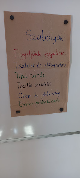 A boldogságórát a Jól érzem magam című dal meghallgatásával kezdtük, ami jó hangulatot teremtett, és segített ráhangolódni a témára. Ezután közösen lefektettük a szabályokat, majd egy rövid relaxációs gyakorlat következett, amely megnyugtatta és összpontosította a gyerekeket.