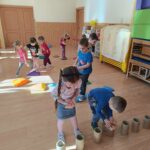 Pillangóölelés: A zene hallgatása közben bevezettük a pillangóölelést. A gyerekek keresztezett karral, ütemesen veregették a vállaikat, miközben azt suttogták: „Biztonságban vagyok, megnyugszom.” Ez a technika segít az érzelmi önszabályozásban és a stressz gyors csökkentésében.