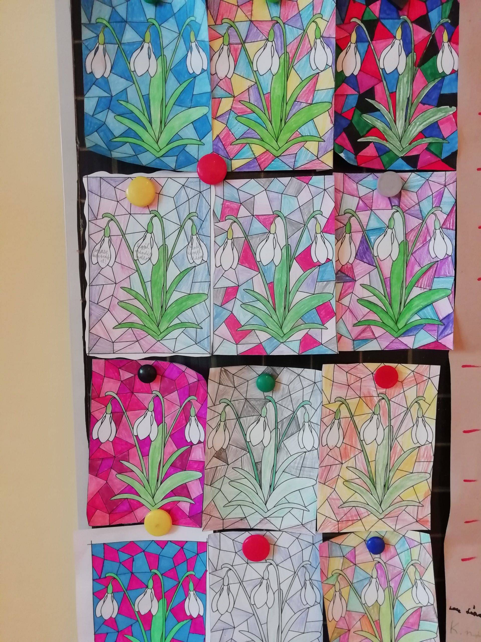 Elkészítettük a biztató hóvirágmezőt, közben zenét hallgattunk.