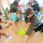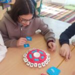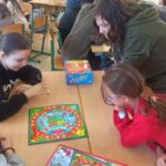 A társas kapcsolataink építését az idei tanévben kiterjesztettük az alsó tagozatra. Rengeteg társasjátékot hoztunk, és bevittük a 3. osztályba. Az itt tanuló gyerekek nagyon örültek látogatásunknak, főleg mikor megtudták, hogy a 7. osztályosok velük fognak egész órán játszani. Hamarosan beszélgetés és nevetés töltötte be a tantermet. Az együtt játszás nagy sikert aratott! Sokat tanulhattunk magunkról, és egymásról is! Örömmel néztem, ahogyan a két fejjel magasabb „nagyok”, leülek a „kicsik” mellé, és nagy türelemmel, szeretettel viselkedtek velük! A másik gyakorlatunkat az osztály diákjai közti bizalom tovább erősödése érdekében végeztük el. Hármas csoportokat alakítottuk, és két gyerkőc bekötött szemmel vezette körbe az iskola körül harmadik társát. Mindenki kipróbálta mindkét szerepet, a vezetve lenni, és a vezető szerepét is. Eleinte óvatosan, majd egyre bátrabban viselkedtek a tanulók. A feladat végeztével a beszélgetőkörben megbeszéltük kinek milyen érzés volt rábízni magát másokra. Majd azt is, hogy milyen volt egy társáért felelősnek lenni! Nagyon tanulságos volt a gyerekeknek, mert még nem nagyon voltak hasonló helyzetben!