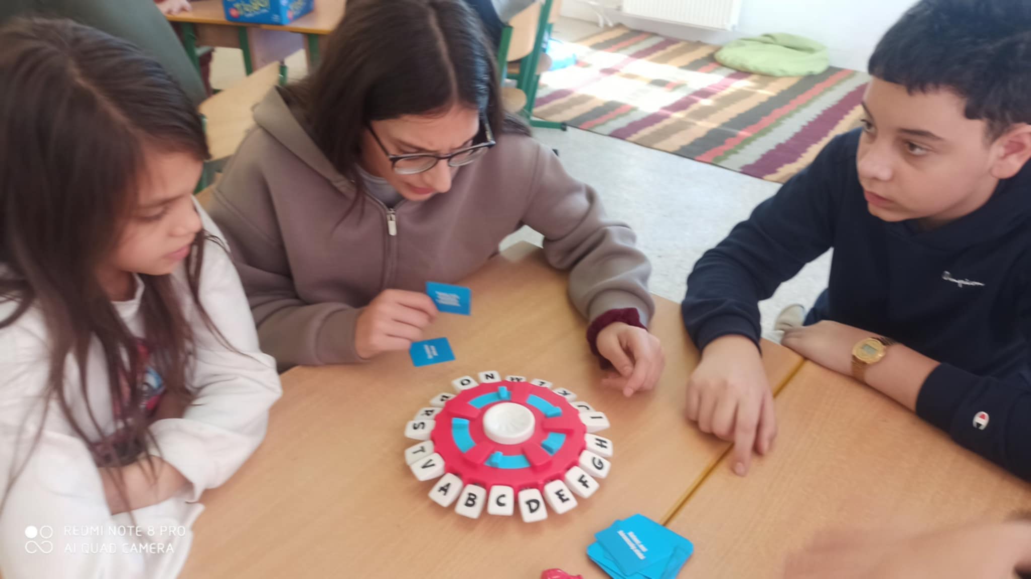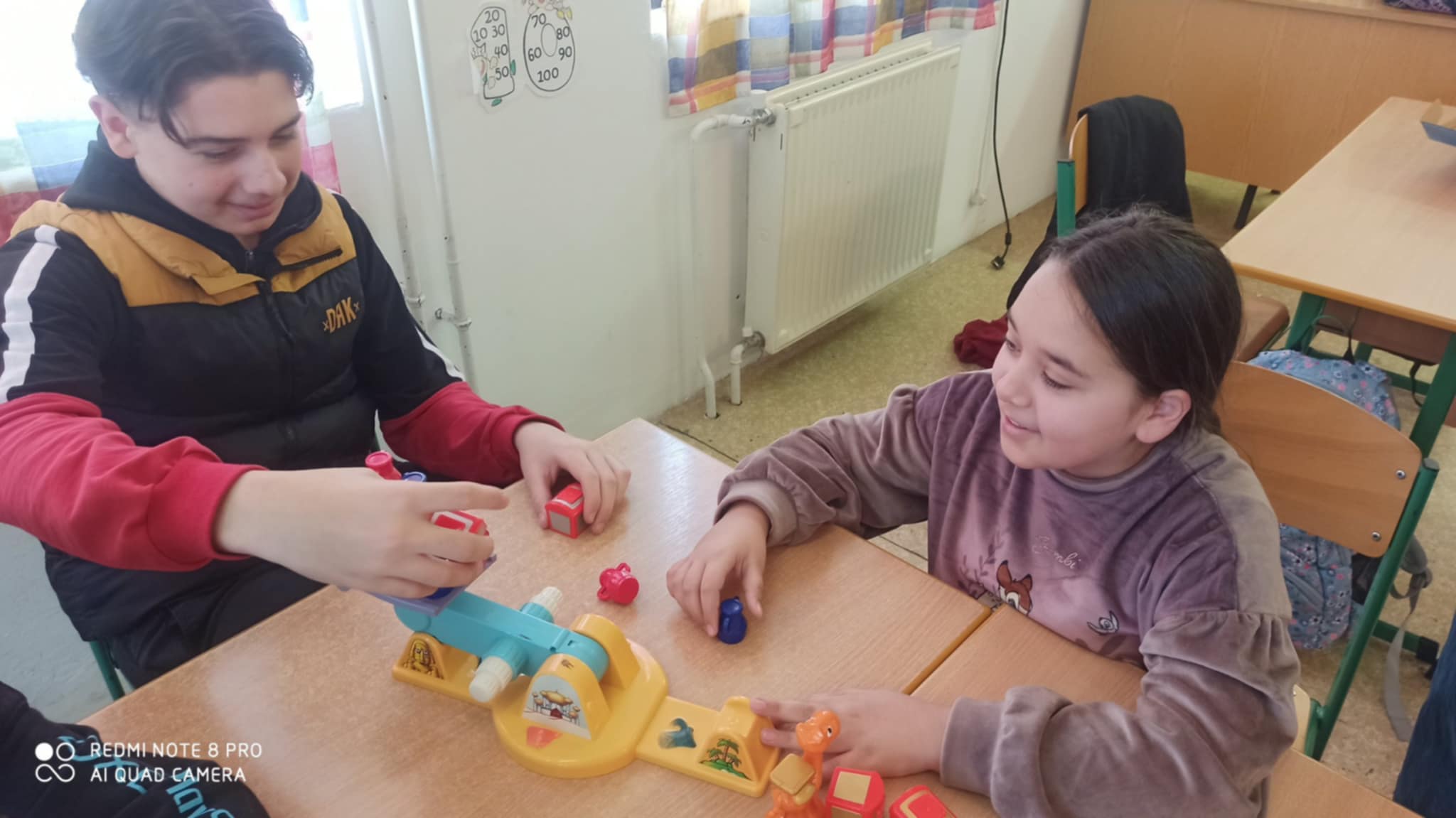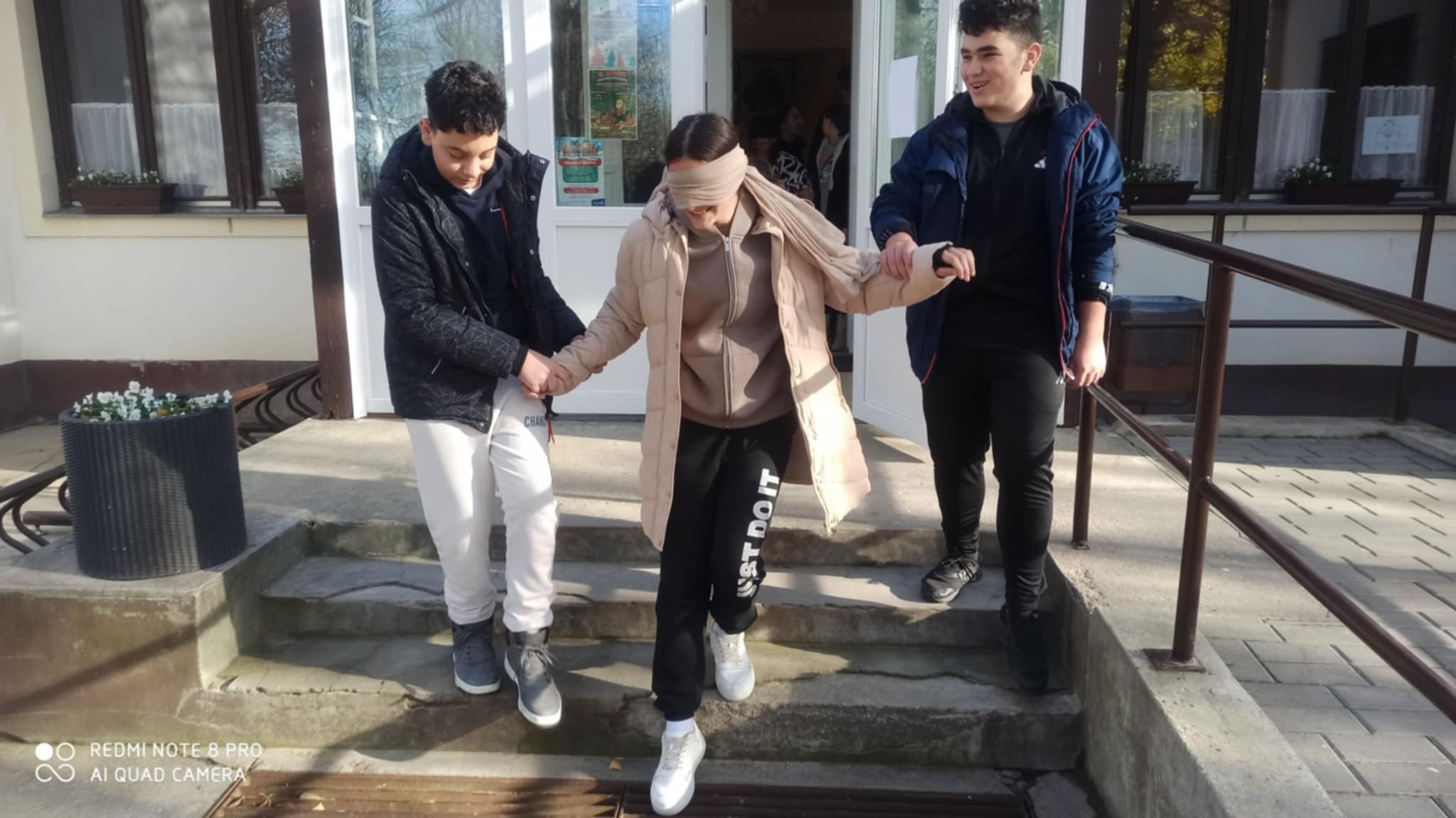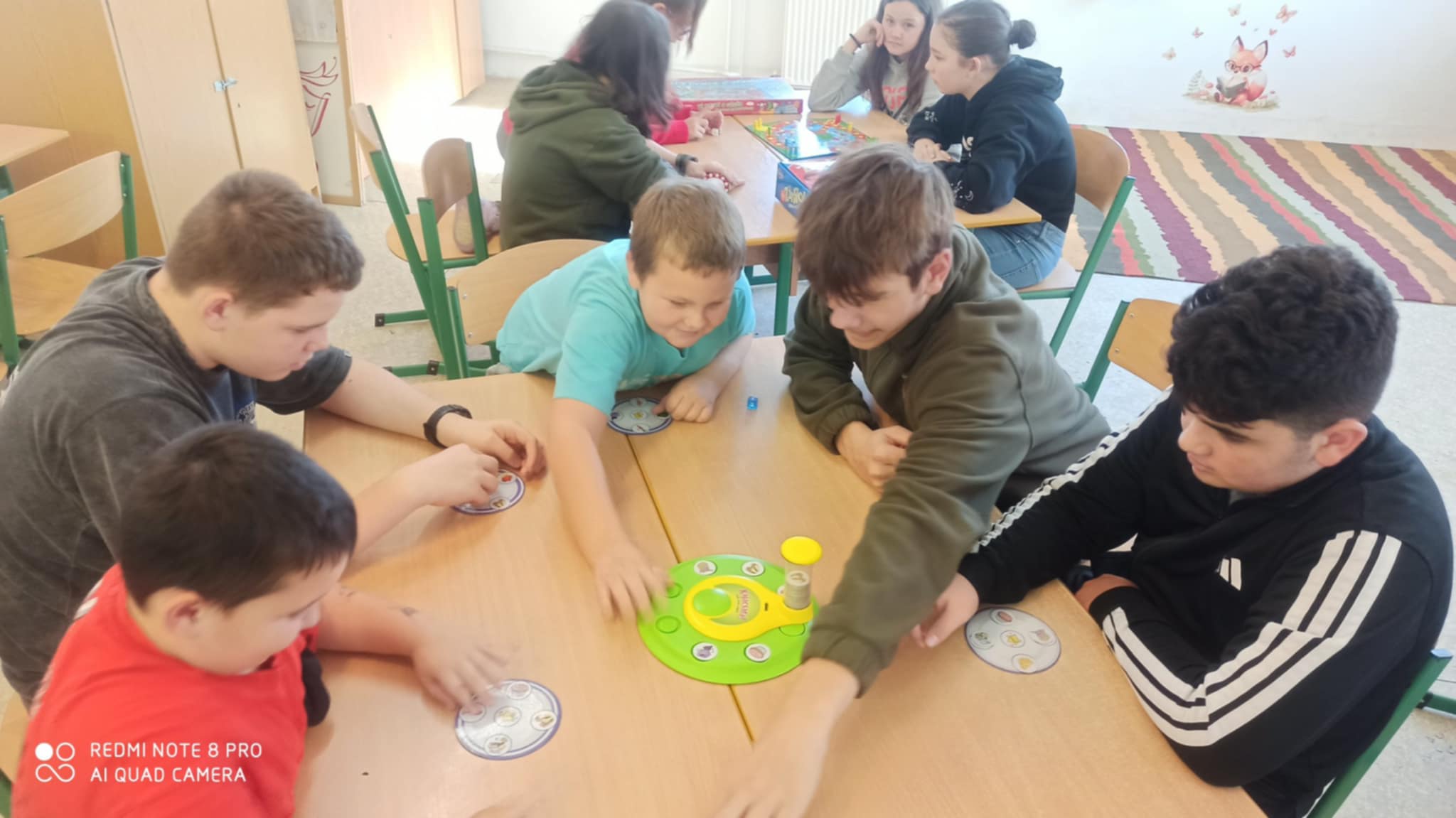 A társas kapcsolataink építését az idei tanévben kiterjesztettük az alsó tagozatra. Rengeteg társasjátékot hoztunk, és bevittük a 3. osztályba. Az itt tanuló gyerekek nagyon örültek látogatásunknak, főleg mikor megtudták, hogy a 7. osztályosok velük fognak egész órán játszani. Hamarosan beszélgetés és nevetés töltötte be a tantermet. Az együtt játszás nagy sikert aratott! Sokat tanulhattunk magunkról, és egymásról is! Örömmel néztem, ahogyan a két fejjel magasabb „nagyok”, leülek a „kicsik” mellé, és nagy türelemmel, szeretettel viselkedtek velük! A másik gyakorlatunkat az osztály diákjai közti bizalom tovább erősödése érdekében végeztük el. Hármas csoportokat alakítottuk, és két gyerkőc bekötött szemmel vezette körbe az iskola körül harmadik társát. Mindenki kipróbálta mindkét szerepet, a vezetve lenni, és a vezető szerepét is. Eleinte óvatosan, majd egyre bátrabban viselkedtek a tanulók. A feladat végeztével a beszélgetőkörben megbeszéltük kinek milyen érzés volt rábízni magát másokra. Majd azt is, hogy milyen volt egy társáért felelősnek lenni! Nagyon tanulságos volt a gyerekeknek, mert még nem nagyon voltak hasonló helyzetben!