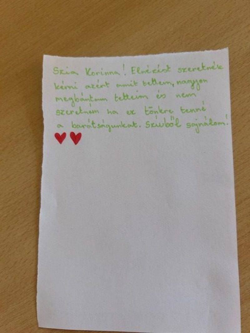 Mindenkivel előfordult már, hogy megbántott valakit. Fontos, hogy ezt belássuk, tudjunk bocsánatot kérni. Bocsánat kérő sms üzeneteket küldtek a gyerekek egymásnak papírformában. Jó volt látni a megbocsátó arcokat.