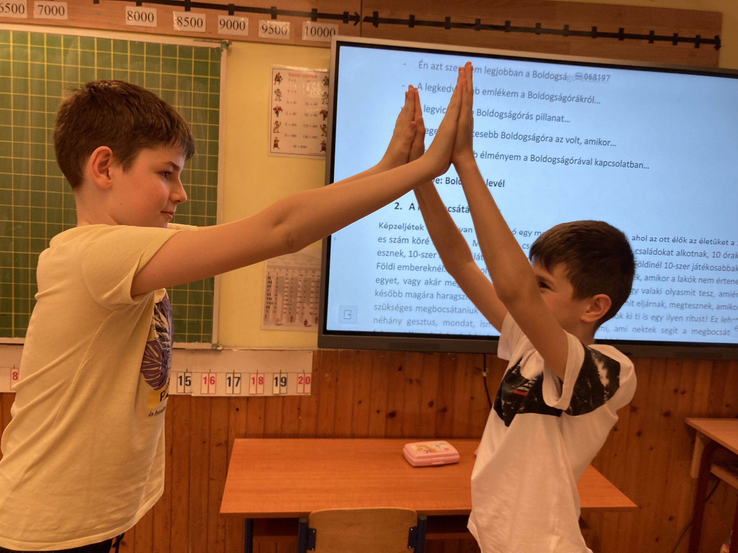 A gesztus, a mimika, a mozdulat mindent elárulhat rólunk! Aktívan játszottak el a gyerekek azzal a gondolattal, hogy szavak nélkül kérjenek bocsánatot egymástól. Fontos volt számukra, hogy a társuk lereagálja a történéseket! Kedvelték a feladatot a diákjaim.