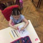 Csoportokban elkészítették a boldog abécét a gyermekek. Közben elkészítettük az osztály közös rajzát. A foglalkozás alatt bárki, bármikor rajzolhatott a papírra, de mindenki csak egy-egy vonalat, elemet rajzolhatott csak hozzá. A hónap dala hallgatás közben pedig készültek a szebbnél szebb színezők is.