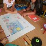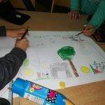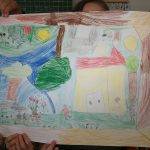 A 2.a – ban először hálafát készítettünk, majd kinéztünk az ablakon és ami eszünkbe jutott azt megfogalmaztuk, lerajzolták csoportmunkában. Élvezettel hallgattam a gyerekek „csiripelését” miközbennrajzoltak. Mindenki ki is mondta mit fog lerajzolni. Intézményünk sajátossága, hogy a közvetlen szomszédságában egy római katolikus templom áll. Így szinte mindegyik csoport képén megjelenik a templom, „Isten háza”, ahol a legtöbb család vasárnaponként hálát ad az életért, szeretetért, egészségért, békéért, „békét adj szívünknek, békét családunknak, békét nemzetünknek, békét a világnak”. Ahogy tovább gördítettük a fonalat az ablakon kitekintve egyre csak egyre jöttek a szavak, mondatok, ki miért hálás: szüleinkért, földünkért, a levegőért, a fákétr, virágokért állatokért, …… és végül, de nem utolsó sorban önmagunkért.