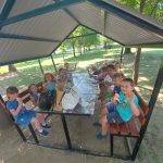 Elérkeztünk a program utolsó hónapjához, amit már nagyon vártak a gyerekek. Mivel nagycsoportos gyerekekről van szó, a hónap aktualitása volt még a ballagás és búcsú az óvodától. Így csupa jeles esemény színesítette ezt a hónapot, így méltóképpen zártuk a boldogságórákat és az óvodás éveket a Katica csoportban. Sokat beszélgettünk a Boldogságvárhoz vezető lépcsőkről. Újra felidéztük mindet, megbeszéltük a jeleket és, hogy melyik lépcsőfokról mit tanultunk meg. Mindegyikhez mondtuk példákat és egész sok mindenre emlékeztek. Ebben nagy segítségünkre volt az utolsó mese is, ami nagyszerűen összefoglalja a boldogságfokozó elemeket. Miközben meséltem a mesét, a lépcsőfokok mellé rajzoltam a színes gyöngyöket, ugyanúgy ahogy megjelentek a mesében – rávezetve ebből őket a boldogságlánc értelmezésére. Ezt követően készítettük el a munkafüzet feladatait: kiszínezték az elemeket, lerajzolták a kedvencüket, elkészült a boldogságkerék és a boldogságfüzér – ez utóbbi gyöngyfűzés formájában is megvalósult. Végül mindenki lerajzolta a saját boldogságvárát, amiből készítettünk egy tablót a ballagási tabló mellé. Ebben a hónapban valóban megjelent minden boldogságfokozó elem, amelyet az út során megismertünk. Mivel közeledett a ballagás, így nézegettünk fotókat, videókat az elmúlt három évről, összeállítottuk mindenki mappáját, amiben az idei munkákat gyűjtöttük, elkészítették mozaikragasztással a saját jeleiket. A gyerekekkel közösen készítettünk köszönőleveleket azoknak a helyi szervezeteknek, akiknek sok támogatást köszönhettünk az óvodás évek során (könyvtáros néni, konyhás nénik, nyugdíjas klubok, védőnő, boltos néni …) és néhány séta alkalmával körbehordtuk a faluban ezeket a leveleket. Jótékonykodtunk is: az év során összegyűjtött műanyagkupakokat elvittük a gyűjtőhelyre, melyet jótékony célra fognak felhasználni. Voltunk játszótéren és fagyizni, élveztük az apró örömöket. Az egész tevékenységet az öleléslánccal zártuk.