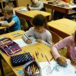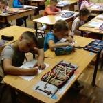 Az órát a „nagyoktól” (10-14 éves korosztály) tanult „Napra forgó a napraforgó” relaxációs gyakorlattal kezdtük. Beszélgettünk a nyári napraforgótáblák szépségéről, a napraforgó virágról, ami mindig megkeresi a fényt. Példaként állítottuk magunk elé, hogy mi is mindig forduljunk a szép dolgok felé, keressük meg a boldogságot a környezetünkben.