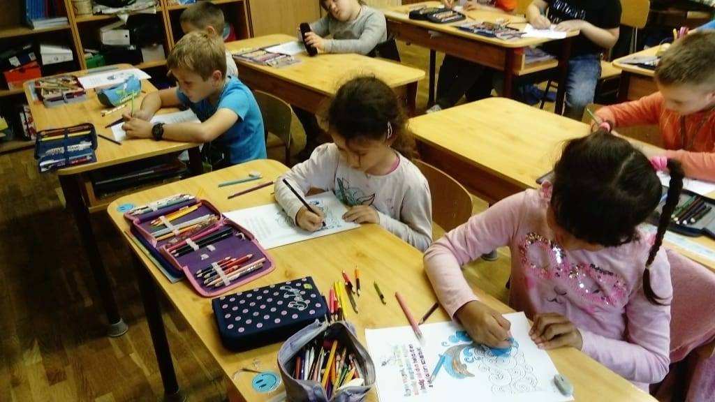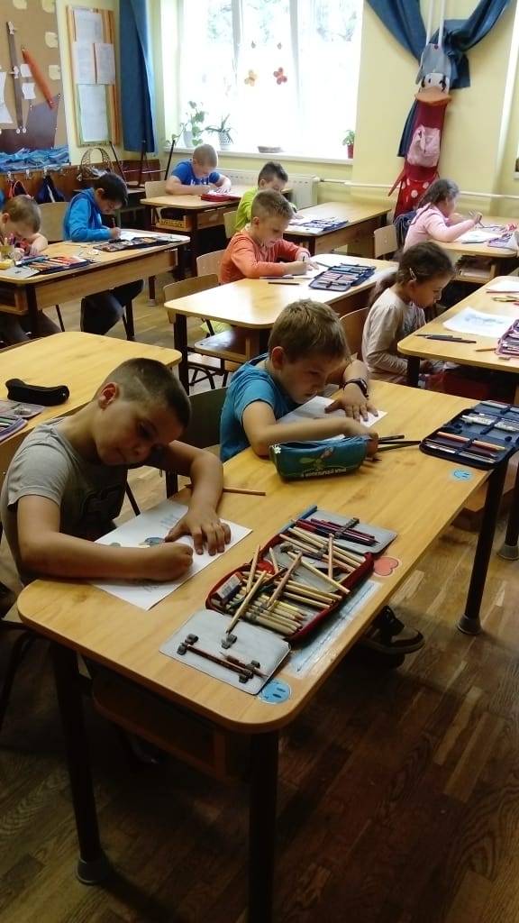 Az órát a „nagyoktól” (10-14 éves korosztály) tanult „Napra forgó a napraforgó” relaxációs gyakorlattal kezdtük. Beszélgettünk a nyári napraforgótáblák szépségéről, a napraforgó virágról, ami mindig megkeresi a fényt. Példaként állítottuk magunk elé, hogy mi is mindig forduljunk a szép dolgok felé, keressük meg a boldogságot a környezetünkben.