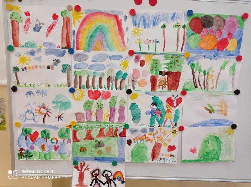 A hangulatkeltés, és a mese felolvasása segítségével, újra átélhettük az eddigi állomások boldogságát, és szépségét. A történet meghallgatása után, minden gyerek kiemehetett saját részre egy, vagy akár több kulcs mozzanatot, melyet szabadrajz segítségével papírra is vethetett.
