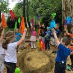 Másnap Boldoságvárat építettünk az óvoda udvarán homokból.