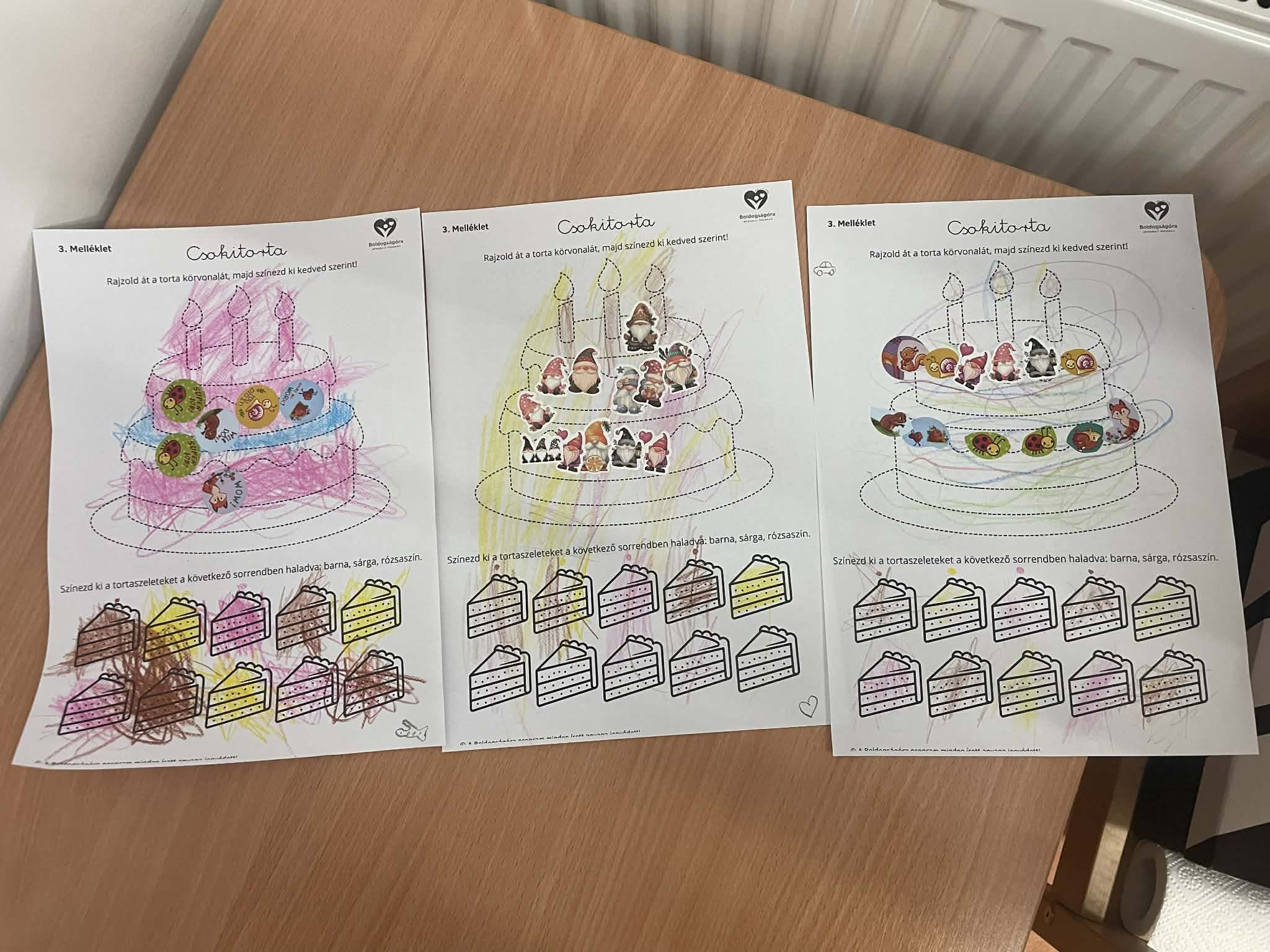 A csokitorta világnapja alkalmából vidám, élményközpontú Boldogságórát tartottunk, amelynek középpontjában az öröm, a közösség és az együtt átélt élmények álltak. A foglalkozás során a gyermekek csokitortás színezőket készítettek, miközben beszélgettünk arról, mi minden tesz bennünket boldoggá, és hogyan tudunk örömet szerezni egymásnak. A színezés során a gyermekek megtapasztalhatták az alkotás örömét, az önkifejezés szabadságát, valamint a pozitív megerősítés erejét. A foglalkozás végén közösen megfogalmaztuk: a boldogság nemcsak a torta édességében, hanem az együtt töltött időben és az egymás felé fordulásban rejlik. A program erősítette a közösségi élményt, támogatta a pozitív érzelmek tudatosítását.