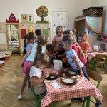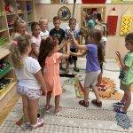 Relaxációs gyakorlatként napimádást végeztünk, majd elmondtuk a Nap, Nap, fényes Nap című mondókát. Többször hallgattuk Bagdi B.: Jobb veled a világ kezdetű dalt, amelyre igény szerint táncoltak a gyerekek. Megismerték a Boldog erdő – kerek erdő c. mesét. Közösség összekovácsoló volt a „seprűtánc” játék. Örültek annak a gyerekek, hogy nem estek ki a játék során, hanem bent maradhattak és újra játszhattak tovább.