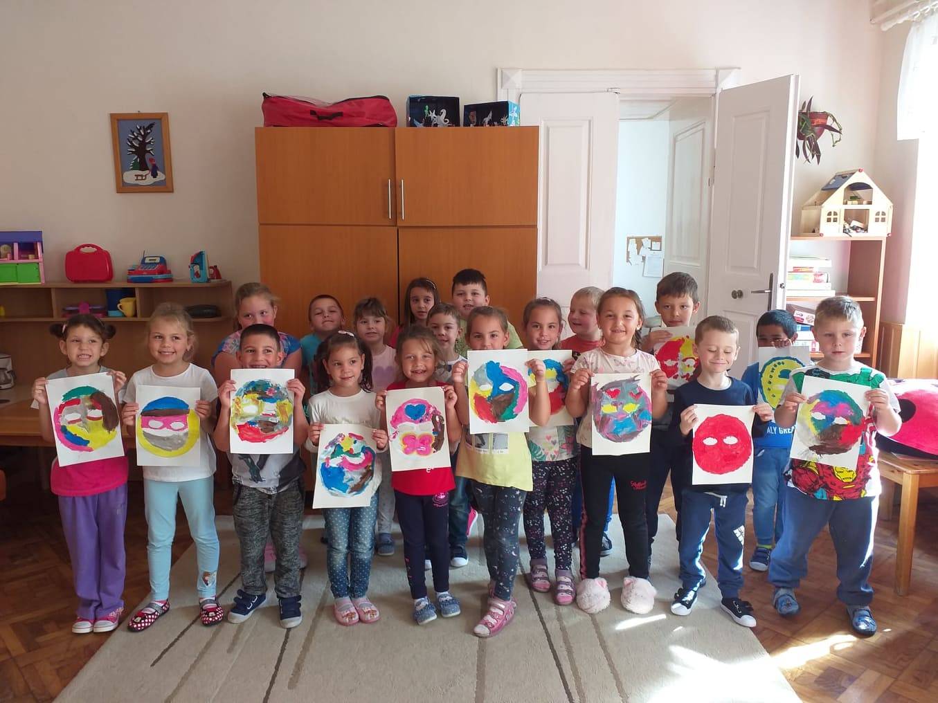 3. Feladat: Ezek után a gyermekek elképzeltek olyan hősöket akik jókat cselekednek a világnak. Ezeknek a hősöknek terveztünk álarcot. Szép és különleges álarcok készültek, amiket később kivágtunk és hazavihették a gyermekek.