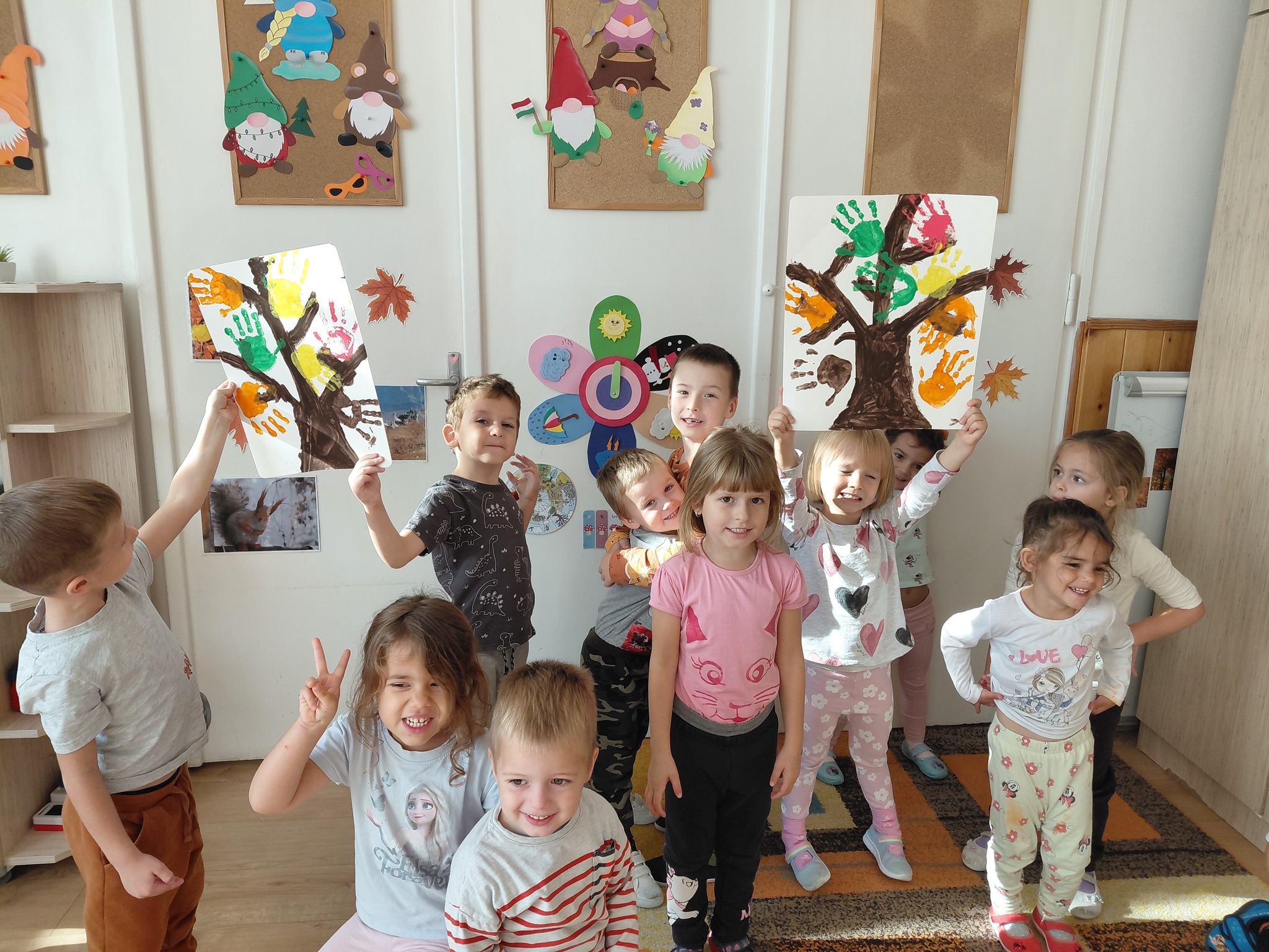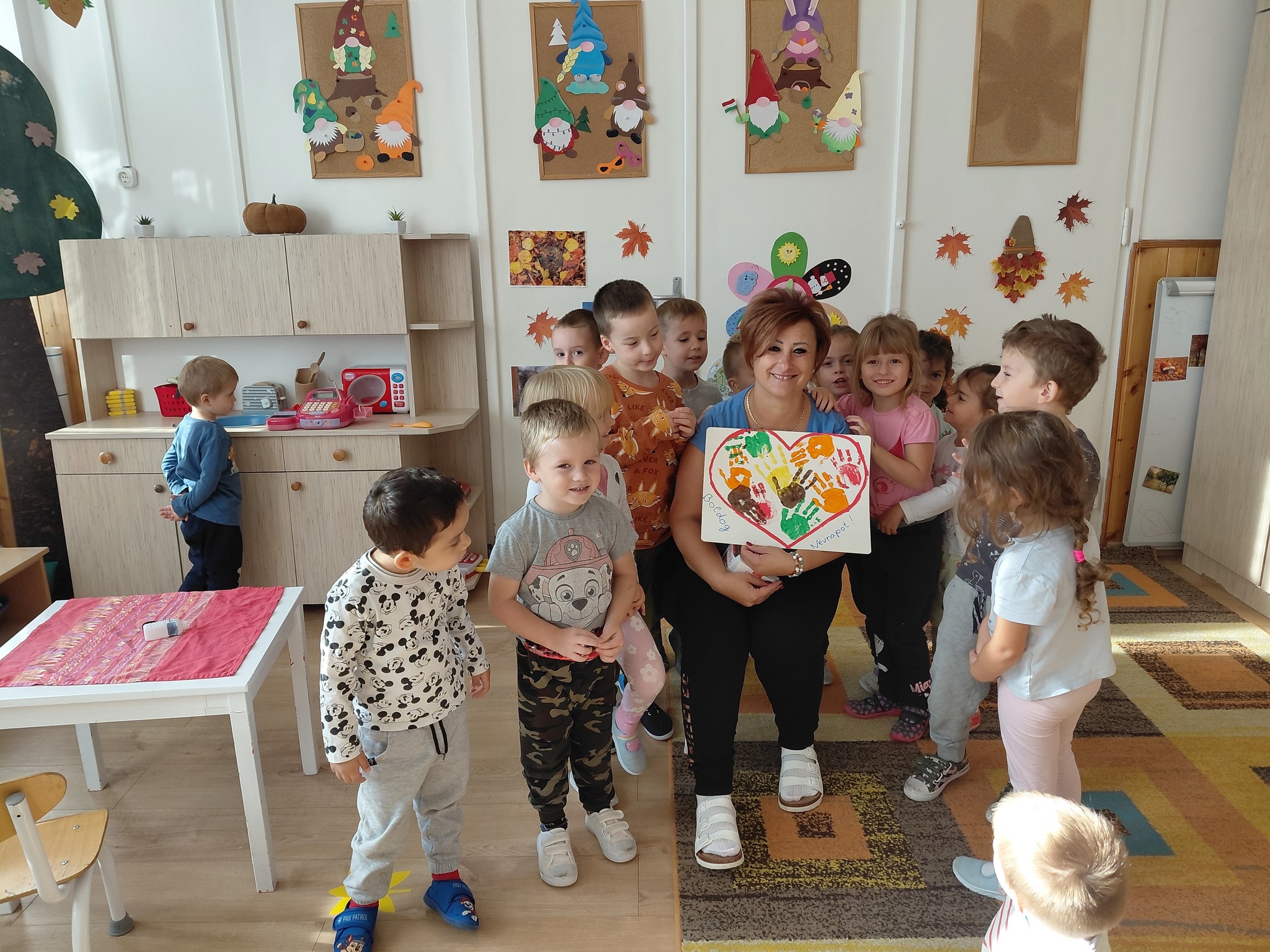 A mese megismerése után saját hálafánkat is elkészítettük, melyek mellé egy hálaszívet is készítettünk. A hálaszívet szeretett dajka néninknek ajándékoztuk, miközben elmondtuk Neki, hogy mennyire hálásak vagyunk azért amit a mindennapokban értünk tesz.