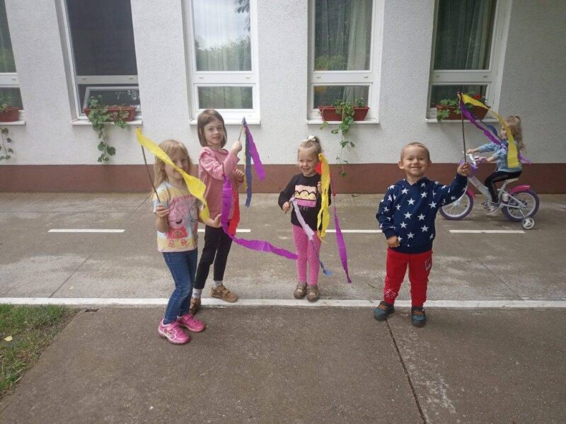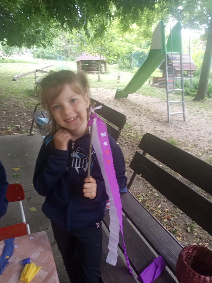 Azon a napon mikor elkészítettük varázspálcáinkat nem sokat sütött a nap! Ezért szerettük volna elővarázsolni valahogy. A gyerekek kitalálták, hogy ha körbe-körbe forgatják a pálcáikat, és énekelnek is akkor biztosan sikerül előhívni a napot az égre. Egyre többen készítettek naphívogató varázspálcát és együttesen ez sikerült is!