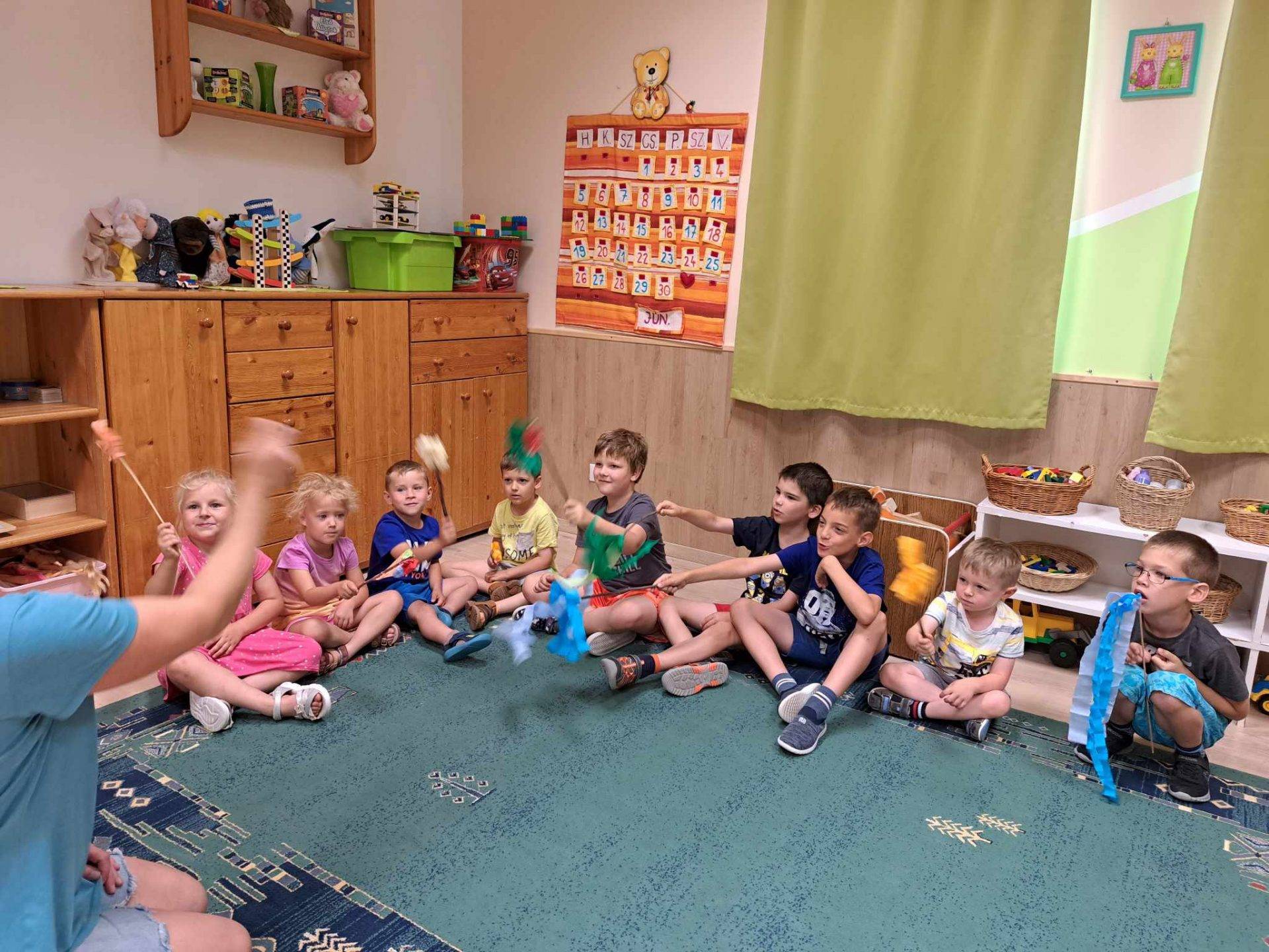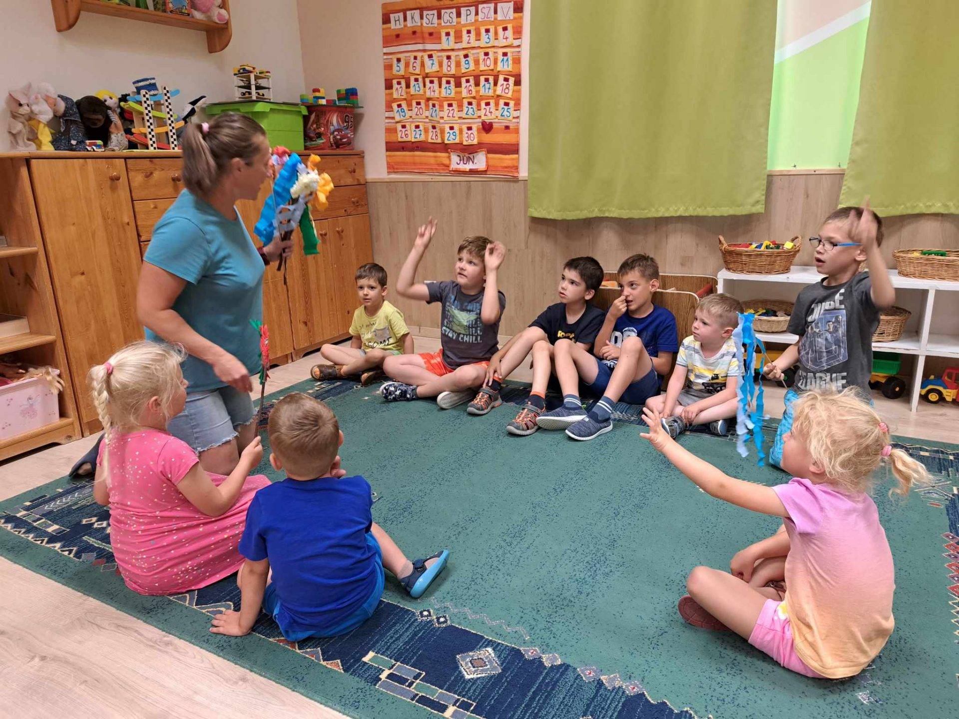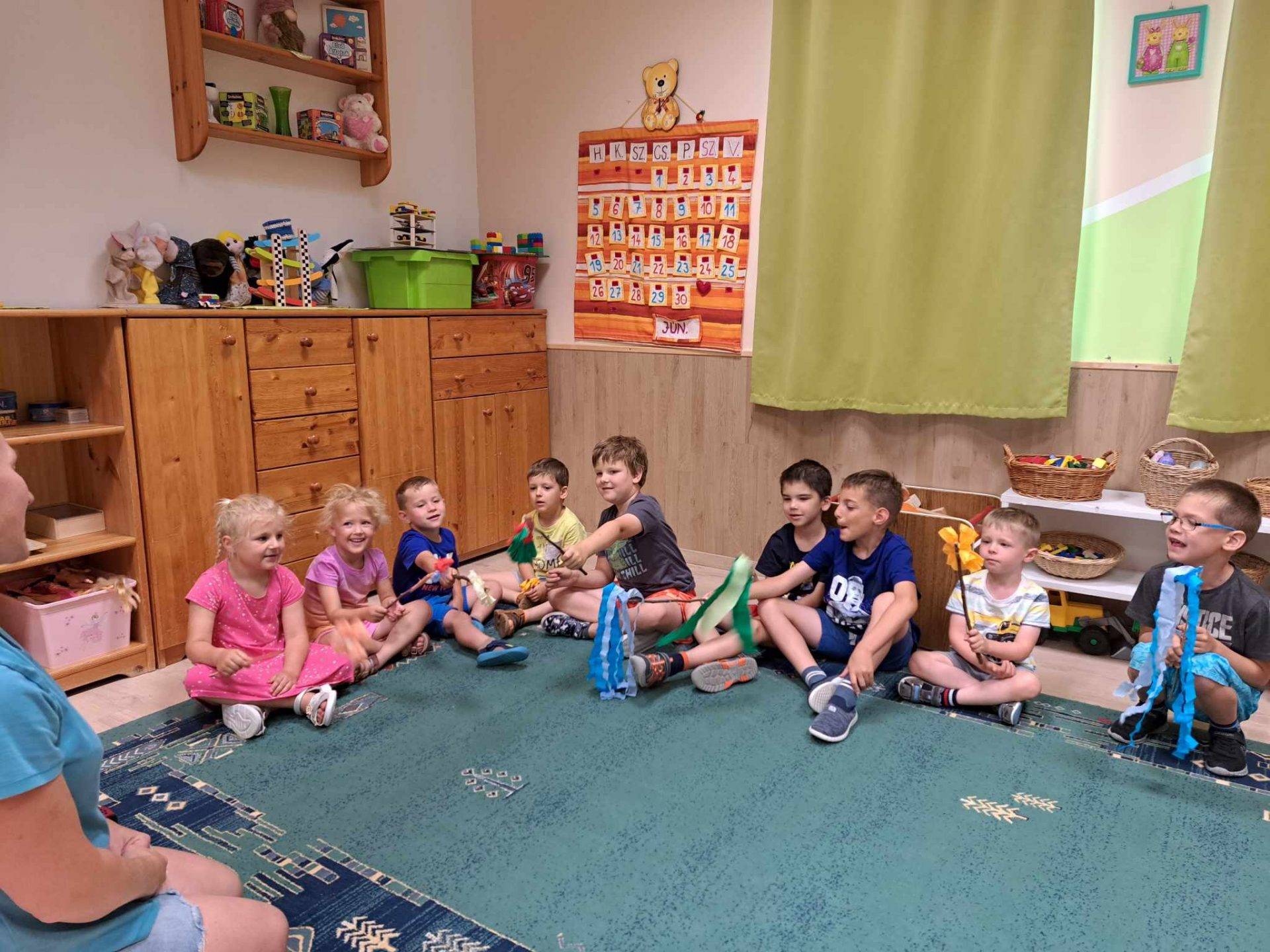 Séta közben faágakat gyűjtöttünk. Beszélgettünk róla, hogy milyen jó dolgok vannak a nyárba, ami szinte mindenkinél jelen van. Ezeket a gondolatokat próbáltuk megvalósítani a varázspálcán (fagyi, víz, pancsolás, görögdinnye, zöld természet, virágok, napsütést. Közösen mindenkinek boldog nyarar varázyoltunk.