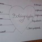 Az óra folytatásaként néhány, az osztályról készült képeken idéztünk fel egy-egy témában közös emlékeket. A képek segítségével a boldogságórák témaköreivel kapcsolatban beszélgettünk, majd a táblára rajzolt szív köré gyűjtöttük a fogalmakat.