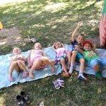 A fák árnyékába kis lepedőket tettünk, amire a gyermekek lepihenve, egyre boldogabb hangulatban hallgatták a Boldogságórai dalokat.