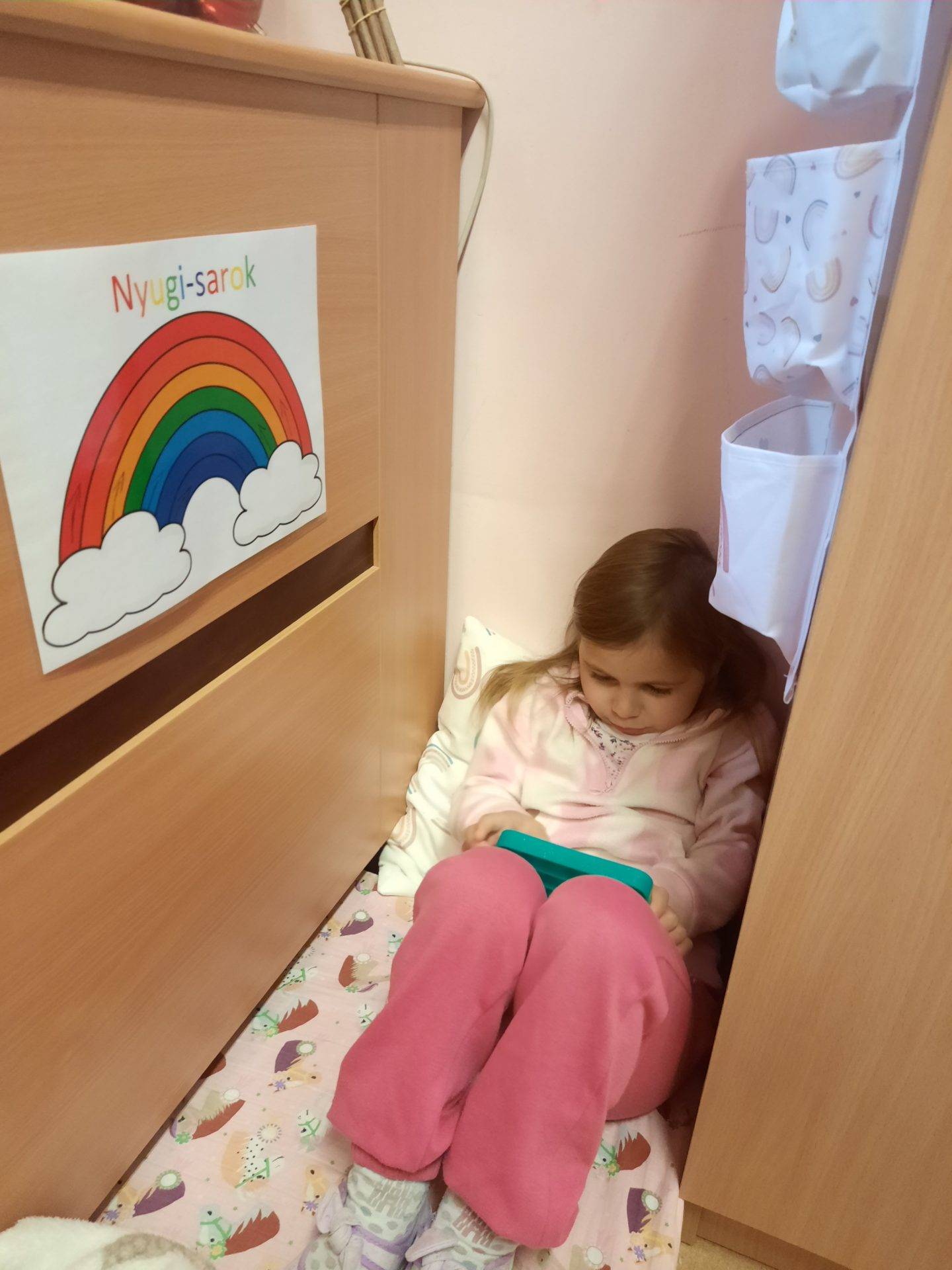 A csoportunkban kialakítottunk egy Nyugi-sarkot, amit elláttunk mindenféle varázslatos eszközzel, ami segít bennünket abban, hogy a rossz érzéseinket leküzdjük.