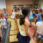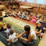 A témakört augusztusban tudtuk megvalósítani vegyes csoporttal, hiszen a nyári szünetet már sok kisgyermek otthon töltötte. Búzát őröltünk, szeretet cipót sütöttünk és megvendégeltük vele Dóra babát. Hálából elárulta nekünk, hogy az ő boldogságvárában van egy olyan folyosó, ahol ha átmegy meghallja milyen jó tulajdonságai vannak. Ezt mi is kipróbálhatjuk, csak össze kell fognunk és végig gondolni, hogy mit szeretünk a másikban.Mindenkinek van erőssége és jó tulajdonsága csak meg kell találni! Mi is készítettünk szeretetfolyosót a gyerekekkel, ahol akinek volt kedve az átmehetett. A tulajdonságok felsorolása még nehezen ment, ám a segítségünkkel mindenki mosolyogva ment végig és átérezhette, hogy értékes és fontos tagja a csoportnak.A tevékenységet székfoglalóval zártuk a gyerekek által választott dalra. (Sünik)