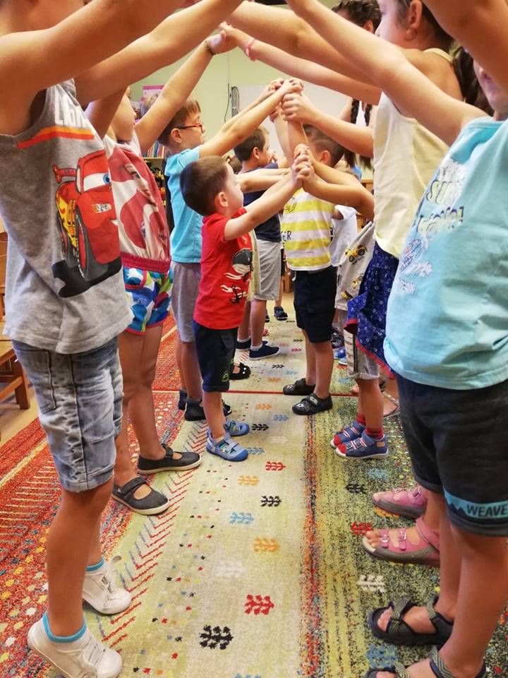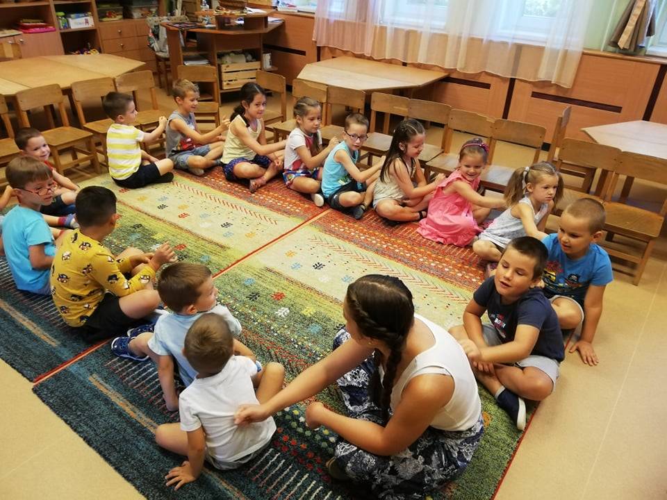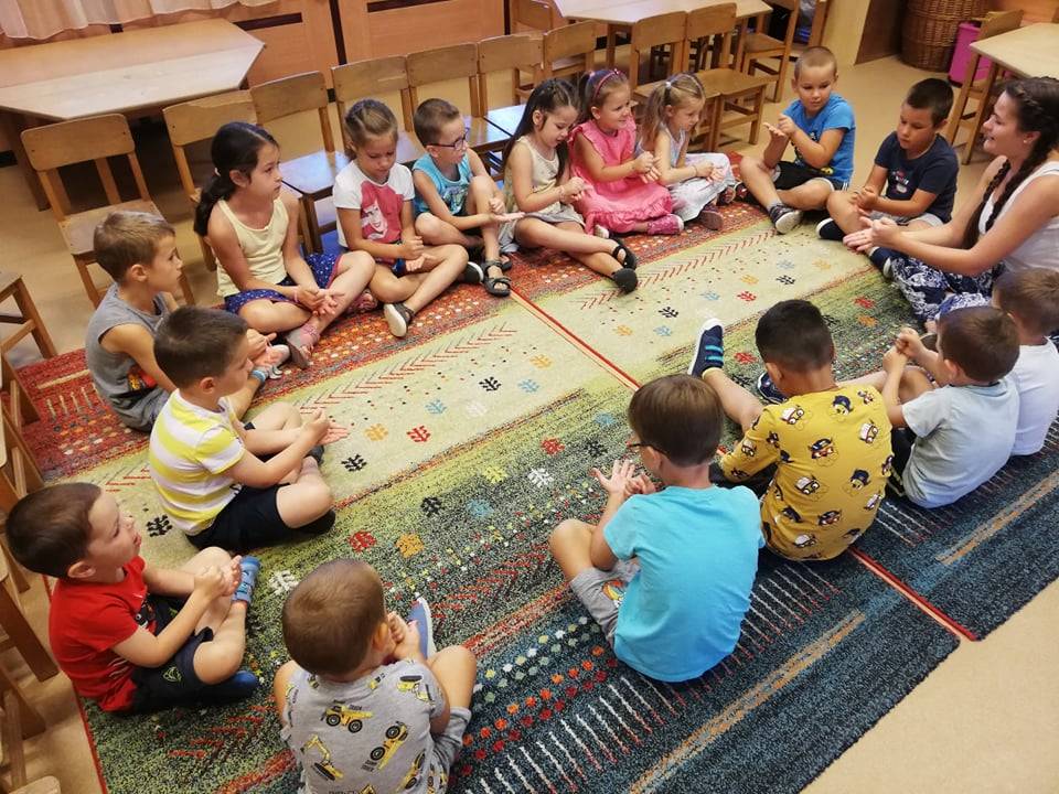 A témakört augusztusban tudtuk megvalósítani vegyes csoporttal, hiszen a nyári szünetet már sok kisgyermek otthon töltötte. Búzát őröltünk, szeretet cipót sütöttünk és megvendégeltük vele Dóra babát. Hálából elárulta nekünk, hogy az ő boldogságvárában van egy olyan folyosó, ahol ha átmegy meghallja milyen jó tulajdonságai vannak. Ezt mi is kipróbálhatjuk, csak össze kell fognunk és végig gondolni, hogy mit szeretünk a másikban.Mindenkinek van erőssége és jó tulajdonsága csak meg kell találni! Mi is készítettünk szeretetfolyosót a gyerekekkel, ahol akinek volt kedve az átmehetett. A tulajdonságok felsorolása még nehezen ment, ám a segítségünkkel mindenki mosolyogva ment végig és átérezhette, hogy értékes és fontos tagja a csoportnak.A tevékenységet székfoglalóval zártuk a gyerekek által választott dalra. (Sünik)