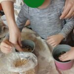 Az óvodánkban több éves hagyomány Luca búzát ültetni. Ahogyan a régiek, úgy mi is várjuk a jövő év reményében a bőséget, jóságot. Mi nem igazán az eljövendő év aratására készültünk a búza ültetésével, inkább a családi jólét szimbolizálására utalt bőséges vetésünk. Minden évben érdekes maga a búza ültetésének folyamata, ahogyan korábban, most is megbeszéltük mit miért végzünk az ültetése során. Tudásuk gyarapítása érdekében, képességeik fejlesztése céljából is értékes az a folyamat, amivel ők maguk ültethetik el a kis magvakat, aztán a csíra fejlődésének lépéseit a saját szemükkel láthatják, tapasztalhatják. Szó esett a megfelelő föld kiválasztásának fontosságáról, a víz és a napfény éltető energiájáról. Az ültetés fontosságán kívül a Luca búza népi vonatkozásáról is meséltem a gyerekeknek. Már a tavalyi évben is azt kértem a gyerekektől, hogy a Luca búzájuk ékesítse a karácsonyi asztalukat szentestén. Többen emlékeztek arra, milyen szépen mutatott az asztalon a már nagyra nőtt zöld búza. Így már mondani sem kellett, többen el is képzelték, milyen jól fog mutatni kezük munkája szentestén az asztalon. Meséltem nekik a búzában elhelyezett gyertya történetéről, arról, mit is jelent, ha megnő akkorára a búza, mint a gyertya. Okkal kötöttük meg a búzát piros szalaggal, a jövő évi jó egészséget várva szúrtuk bele a földbe a jelükkel ellátott spatulát.