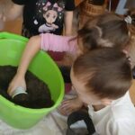 A búza ültetését követően lefeküdtek a gyerekek a szőnyegre, kényelembe helyezték magukat és elmeséltem a Luca széke történetét is. A boszorkányos rész igen felkeltette a kicsik figyelmét, lélegzet visszafojtva hallgatták a mesét. Igazán meghitt hangulata volt a mesélésnek, a történet szálát így szépen kikerekítettem, részletesen meséltem, hogy minél tovább tartson ez pillanat.