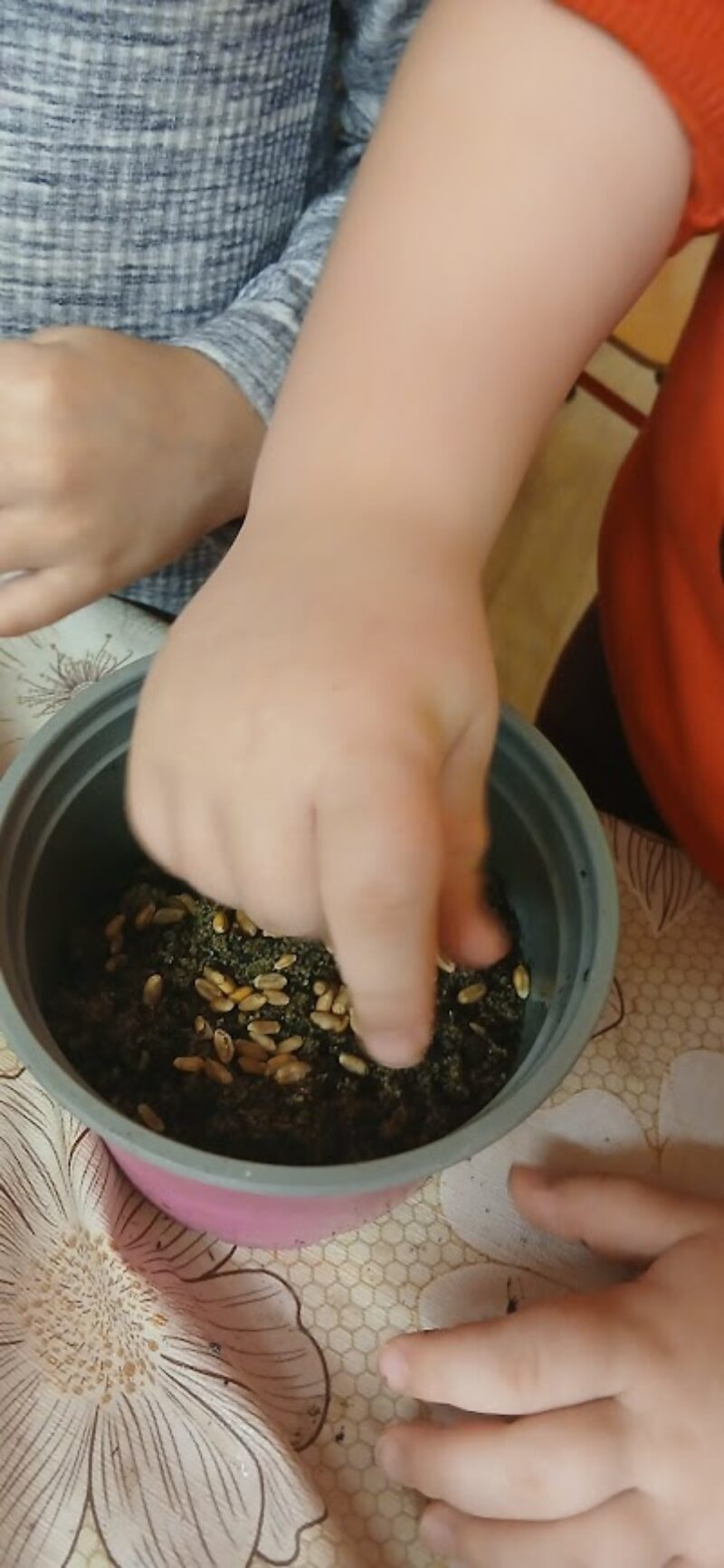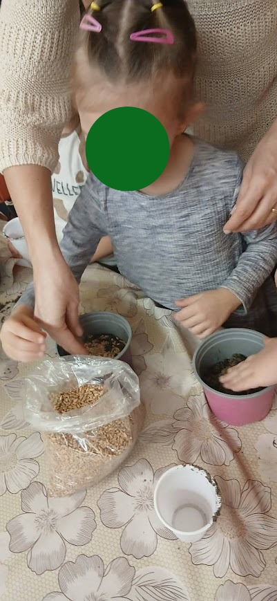 Az óvodánkban több éves hagyomány Luca búzát ültetni. Ahogyan a régiek, úgy mi is várjuk a jövő év reményében a bőséget, jóságot. Mi nem igazán az eljövendő év aratására készültünk a búza ültetésével, inkább a családi jólét szimbolizálására utalt bőséges vetésünk. Minden évben érdekes maga a búza ültetésének folyamata, ahogyan korábban, most is megbeszéltük mit miért végzünk az ültetése során. Tudásuk gyarapítása érdekében, képességeik fejlesztése céljából is értékes az a folyamat, amivel ők maguk ültethetik el a kis magvakat, aztán a csíra fejlődésének lépéseit a saját szemükkel láthatják, tapasztalhatják. Szó esett a megfelelő föld kiválasztásának fontosságáról, a víz és a napfény éltető energiájáról. Az ültetés fontosságán kívül a Luca búza népi vonatkozásáról is meséltem a gyerekeknek. Már a tavalyi évben is azt kértem a gyerekektől, hogy a Luca búzájuk ékesítse a karácsonyi asztalukat szentestén. Többen emlékeztek arra, milyen szépen mutatott az asztalon a már nagyra nőtt zöld búza. Így már mondani sem kellett, többen el is képzelték, milyen jól fog mutatni kezük munkája szentestén az asztalon. Meséltem nekik a búzában elhelyezett gyertya történetéről, arról, mit is jelent, ha megnő akkorára a búza, mint a gyertya. Okkal kötöttük meg a búzát piros szalaggal, a jövő évi jó egészséget várva szúrtuk bele a földbe a jelükkel ellátott spatulát.