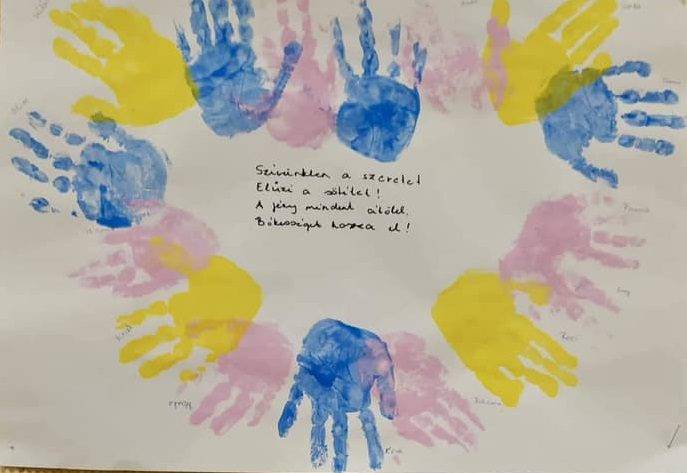 Reflexió: A gyermekcsoport 3 éves gyermekekből tevődik össze, akik még az óvodai életbe való beszoktatás idejét töltik, ezért a Boldogságóra foglalkozásokat több, rövidebb részletben tartottam meg, így feldolgozva az adott témát. A gyermekek életkoruknak megfelelően érdeklődve, aktívan vettek részt a közös játékban. Élményeiket átadva kapcsolódtak be a beszélgetőkörbe. A mesét többször is meghallgatták. Örömmel készítettek hálakezeket, melyek csodaszép díszei lettek az óvodának. Több család csatlakozott a közös hálakert kialakításához.