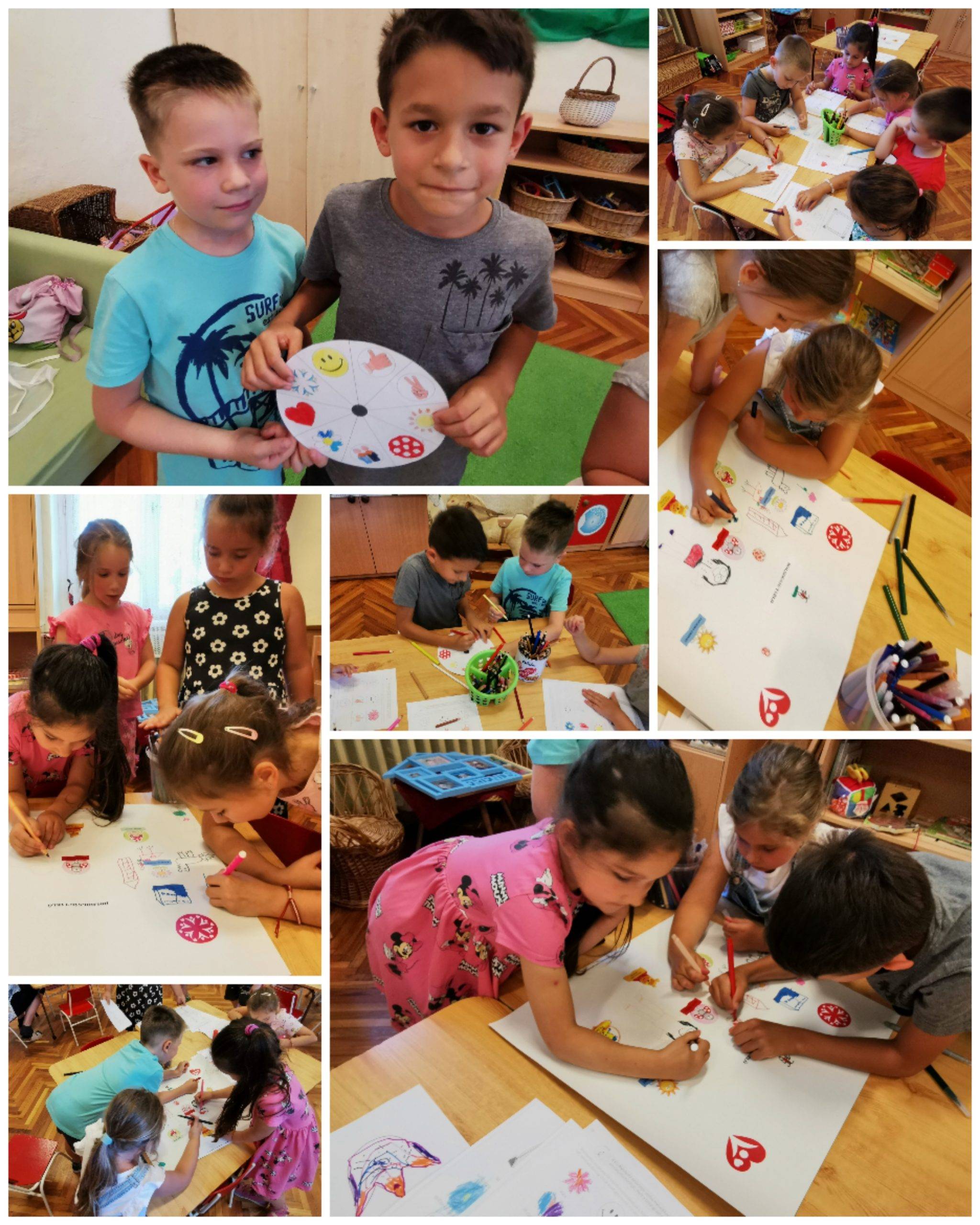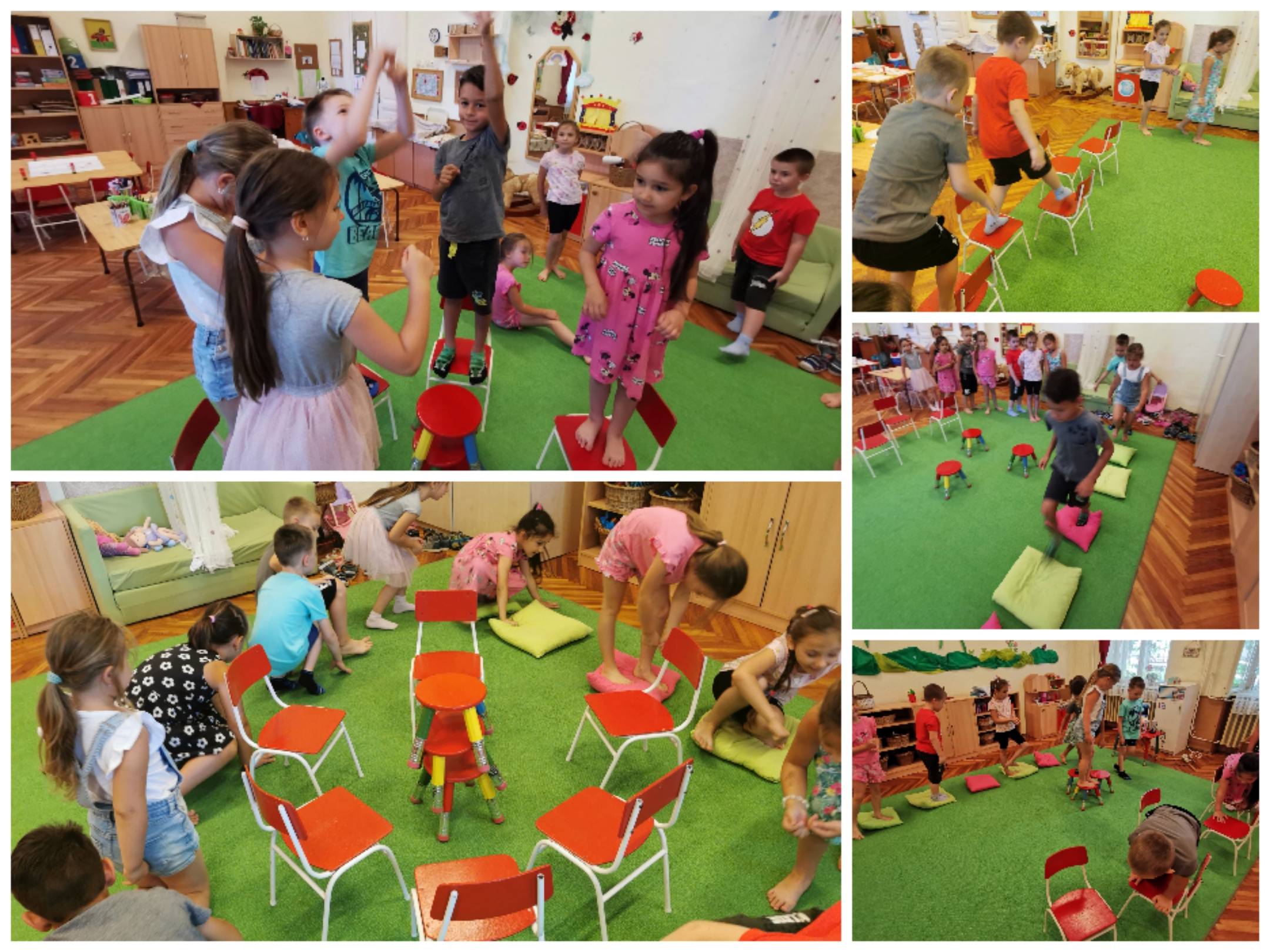 A júniusi hónapban sok minden történt velünk: a nagycsoportosok ballagására készültünk, akik érzelmekkel telve köszöntek el az óvodától, a játékoktól, a sok együtt átélt közös élménytől. Végre közös kirándulásokat szervezhettünk, így lovaskocsis kiránduláson át, Vadasparki látogatáson keresztül, Kalandparki játszókig sok-sok élménydús esemény hozta össze a gyerekcsoportokat. Persze a közös fagyizás, játszóterezés, könyvtár látogatás sem maradt el. Nehezen is búcsúztuk el a gyerekek egymástól a hónap közepén. Szerencsére a legtöbben egy iskolában folytatják majd tanulmányaikat. Az utolsó boldogságóra foglalkozást a lecsökkent létszám miatt, összevonva tartottuk a Kisvirág csoporttal. Könnyen összeszoktunk, hiszen a gyerekek jól ismerik egymást és a ballagásra is együtt készültünk. A fenntartható boldogság téma feldolgozását néhány közös relaxációs gyakorlat kipróbálásával kezdtük: A katicák bemutatták a kedvenc technikájukat a „Tüdőtakarítást”, ami a Kisvirágoknak is egyből megtetszett. Ezután a „Dagasztást” játszottuk el, a feszültségek levezetésére. A „Hintaszék” módszer segített az ellazulásban, a megpihenésben. Nyugodt körülmények között elsőként az ajánlott mesét: Az aranytulipánt, diafilmen megtekintették a gyerekek, méghozzá laptopról, a Virtuális Diamúzeum honlapján van erre lehetőség. Érdekesnek találták a képi világot, és csendben figyelték. Elővettük a mesetarisznyát, belepakoltuk a képzeletbeli kellékeket, a csoportszoba szőnyegére pedig kialakítottunk egy erdőt, akadályokkal. Mindenki a királyfi bőrébe bújt, s így indultunk útnak megkeresni a világ legszebb leányát. Az utunk során a javasolt mondókákkal, énekekkel színesítve haladtunk. Mindig kedvelt tevékenységük, ha akadálypályát építünk, és többször is végigmehetnek. Most is így tettünk, lassabb gyorsabb tempóban lehetett végigmenni, mindig új feladatokkal: ugrással, mászással, akadálykerüléssel. Egymás között megbeszélték, hogy ki vezesse a többieket, így mindig más ment elől. Útközben elraktuk a tarisznyánkba a pikkelyt, a holló tollat, az ősz hajszálat. Amikor el kellett bújni, akkor előhívtuk őket segítségül. A gyerekek elbújtak, és én mint királylány indultam megkeresésükre. Az izgalmasabb játék érdekében csukott szemmel elszámoltam húszig, addig elrejtőzhettek. Gyermeki módon várták, hogy megtaláljam őket, még ha látható helyen is voltak. Amikor újra játszottuk már a kislányok közül választottunk királylányt, és két segítőt is hozzá: egy hollót és egy halacskát. Ők éberen figyelhettek, amíg a királylány csukott szemmel számol, és szükség esetén súghattak a királylánynak. Szélesítettük a búvóhely keresési lehetőségeket is: nemcsak a csoportszobába, de a folyóson, a másik csoportba is elbújhattak – itt segítettek a jelen lévő óvó nénik. Nagyon élvezték, öt alkalommal is eljátszottuk, azután megbeszéltük, hogy az udvaron folytatjuk a bújócskázást. A lakodalmat is megtartottuk és a hónap dalára egy jót buliztunk. Végül megpihenve körbe ültünk és a zárókörhöz javasolt kérdésekről beszélgettünk. Felidéztük az egész éves boldogságóra foglalkozásokat, az átélt pillanatokat. Mindenki elmondta, hogy melyik téma tetszett neki a legjobban, de leginkább azt tudták felidézni, hogy milyen játékokat játszottak. A témakörök jelképeit átbeszéltük a boldogság kerekét segítségül hívva. A Kisvirág csoport örült, hogy együtt játszhattunk, többen a bújócskát emelték ki. Egy kislány az érzelem kártyákról mesélt, amit Ildikó néni hozott hozzájuk játszani. Felidéztük a korábbi együtt töltött boldogságóra tartalmát is: amikor decemberben a boldogító jócselekedetek témahónapjában együtt gyakoroltuk a jószívűséget. Jó érzés volt visszagondolni, hogy ezért a munkánkért elnyertük a hónap csoportja elismerést is. Az oklevelet körbeadtuk. Az asztalnál a gyerekek választhattak a hónap témájához ajánlott színezőket. Végül játékidőben közösen készítettünk egy boldogságtablót, amire rárajzolták kedvenc élményeiket, emlékeiket. Felkerültek a kirándulások, a ballagás, kinti nyári játékok. Feliratoztuk, hogy majd a szülők is eligazodjanak rajta, illetve bővíthessék. A többi csoportot is bevontuk és kértük rajzoljanak ők is a tablóra, szívesen kapcsolódtak be. Az udvaron megépítettük az óvodánk boldogság várát homokból, közepére elhelyeztük a csoportok jelképeit, a boldogóvoda logót. Sokan a csodájára jártak, a szülők is megköszönték az egész éves különfoglalkozásokat, örömmel hallgatták a gyerekek élménybeszámolóit, szívesen olvasták a képes beszámolókat. Jó szívvel búcsúztunk egymástól. A jövő évben is folytatjuk óvodánkban a boldogságóra foglalkozásokat a Micimackó, a Gomba és a Napocska csoportokban.