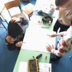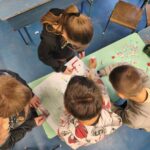 A Boldogságórán a gyerekekkel egy nagy fenyőfát rajzoltunk, amelyre mindenki mini kivágott díszeket tett. Nem írtunk rá utasítást, csak a gyerekek saját nevüket helyezték el a fákon – számukra ez már önmagában egy boldogító jó cselekedet volt, hiszen egymás mellé írták a nevüket, és ezzel kifejezték a közösséghez tartozást és a figyelmességet. A feladat játékos módon mutatta meg, hogy a kis figyelmességek is örömet és összetartozást hoznak a közösségbe.