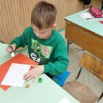 Végül jó cselekedetekkel teli adventi kalendáriummal dolgoztak a gyerekek, melyet kivágtak és ráragasztották egy piros lapra: ez ünnepélyessé tette.