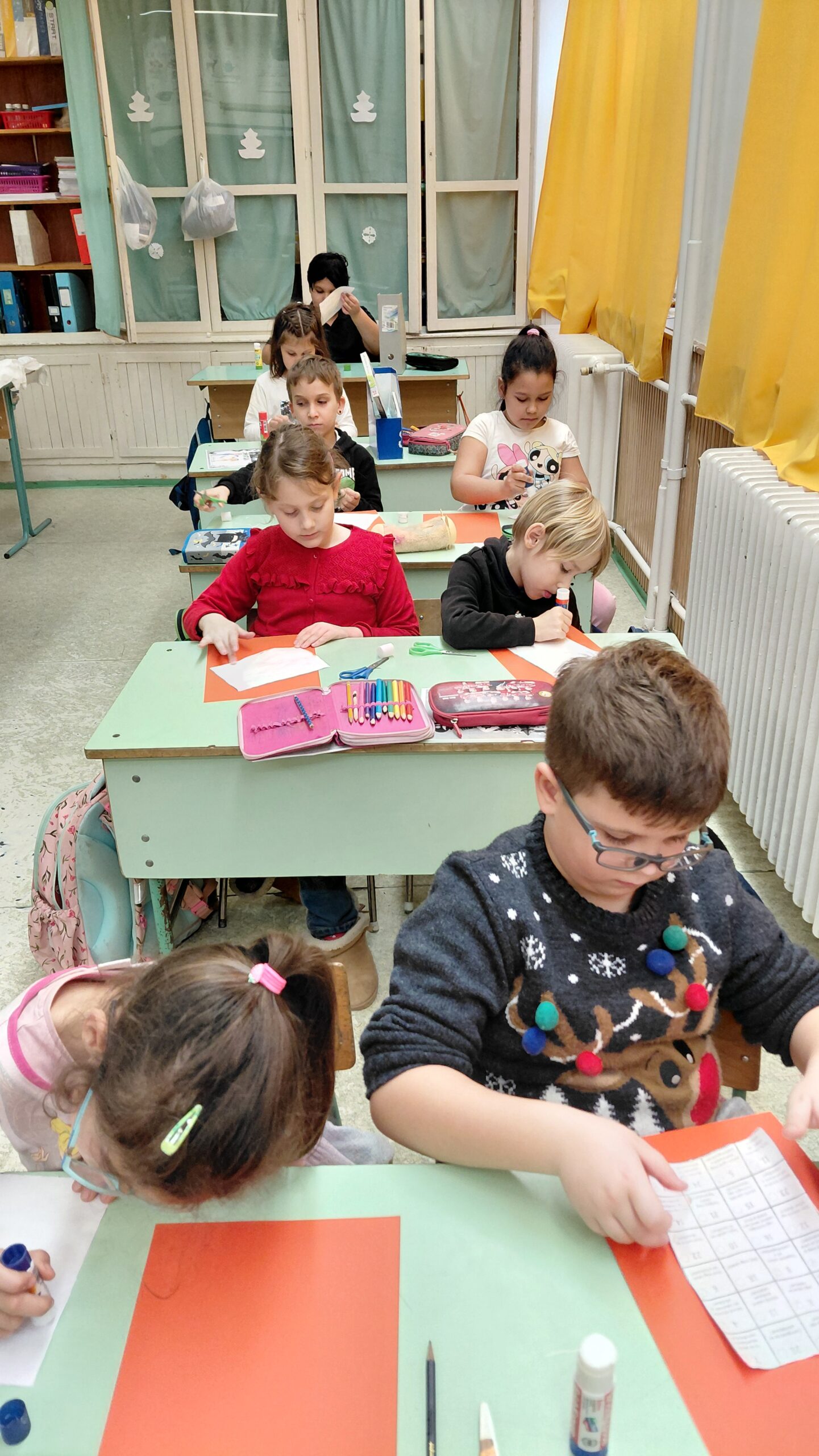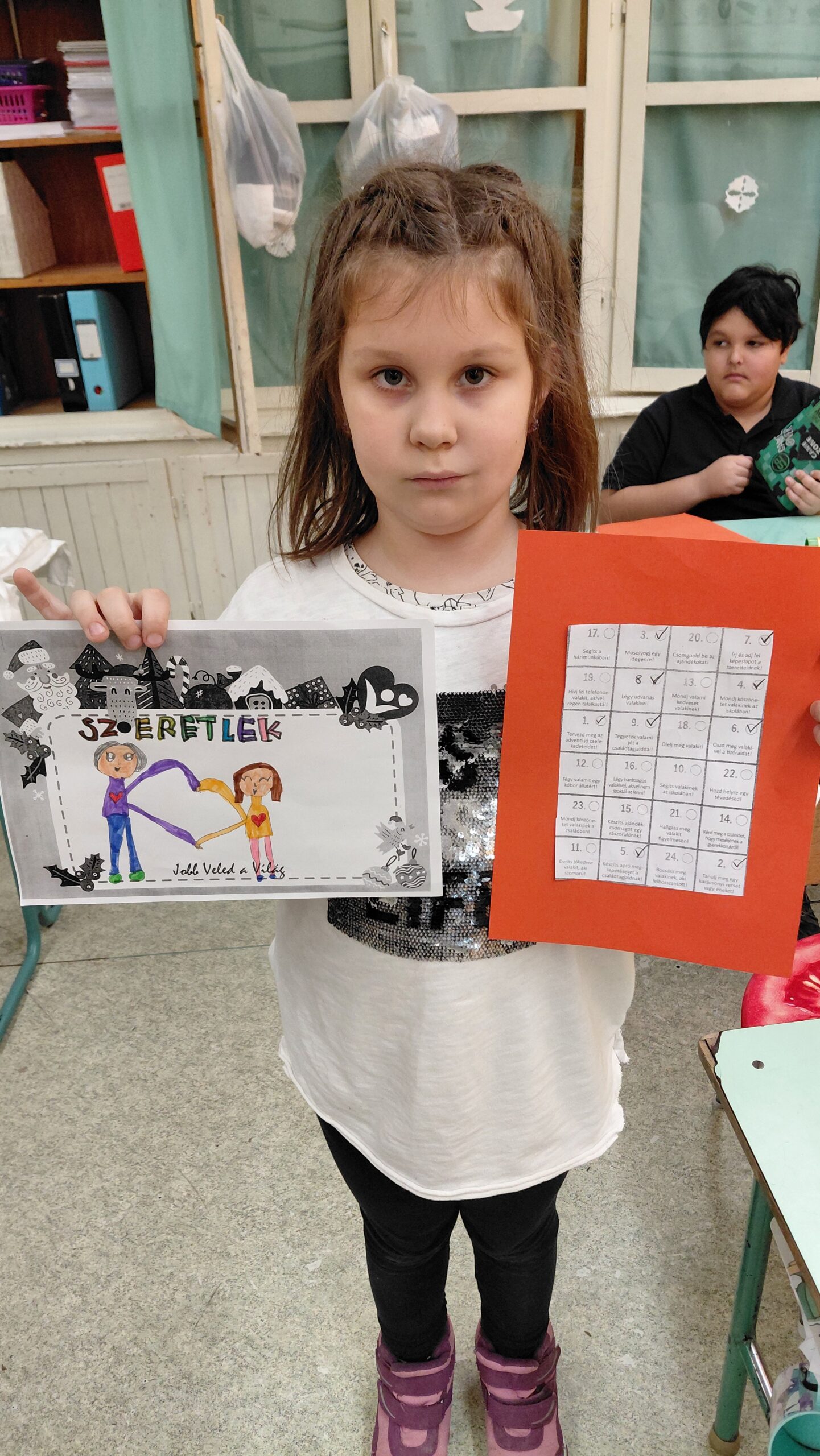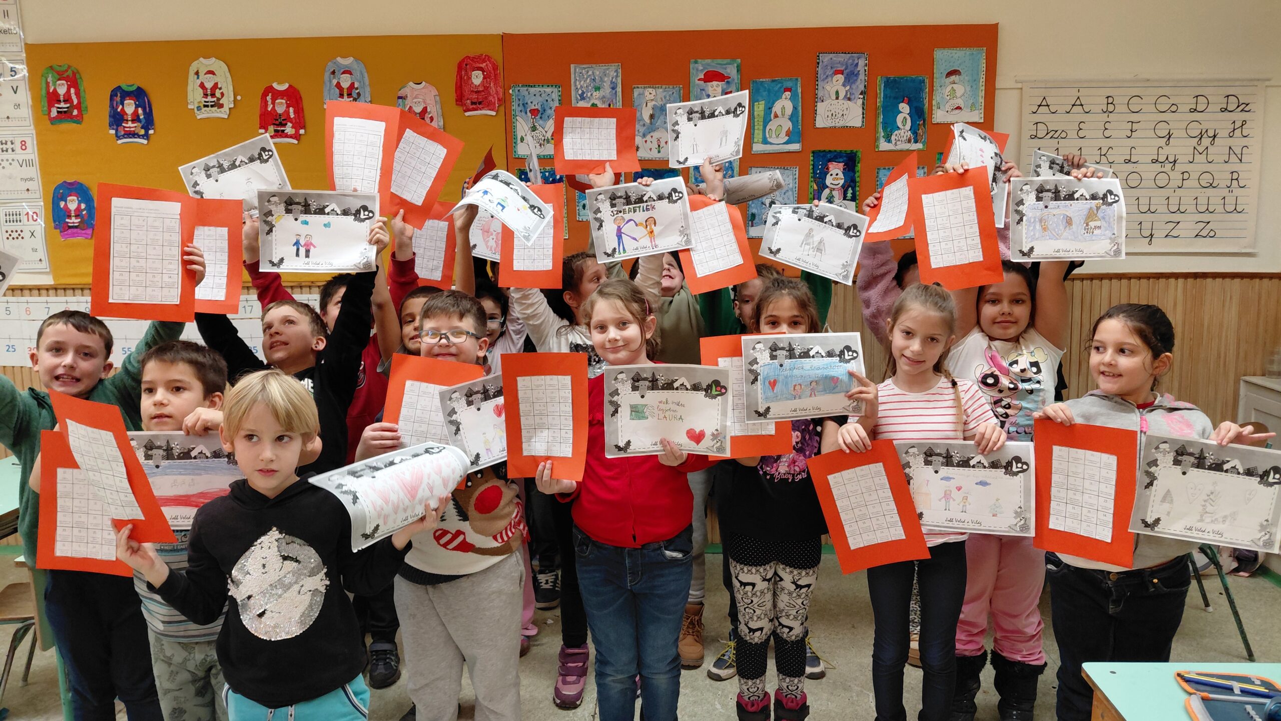 Végül jó cselekedetekkel teli adventi kalendáriummal dolgoztak a gyerekek, melyet kivágtak és ráragasztották egy piros lapra: ez ünnepélyessé tette.