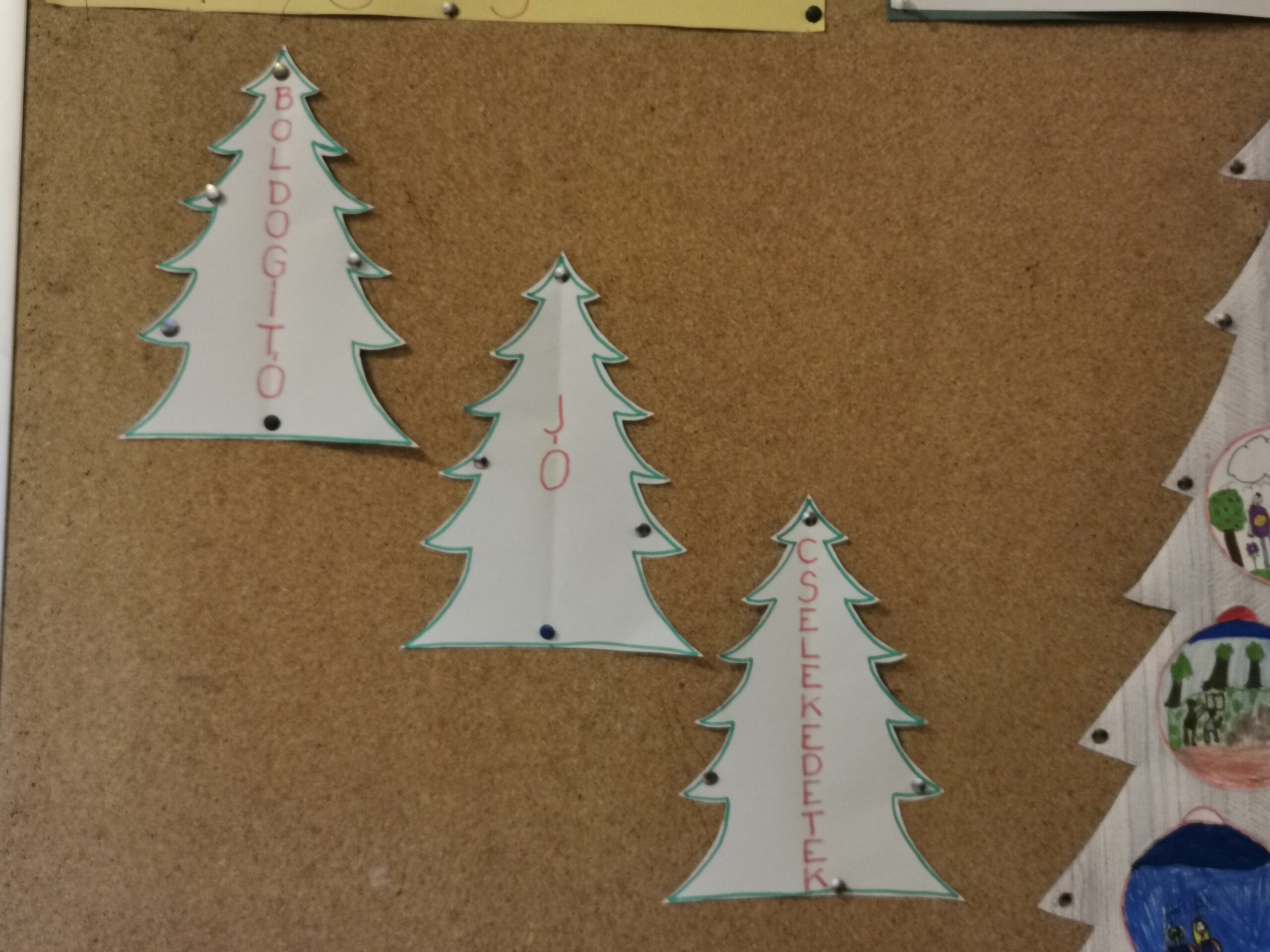 A jó cselekedetek bennünket valóban boldogítottak.😊A másodikosaim alig tudták kiválasztani a sok jó cselekedet közül, hogy melyek kerüljenek a mi „jó cselekedet karácsonyfánk” díszeibe.